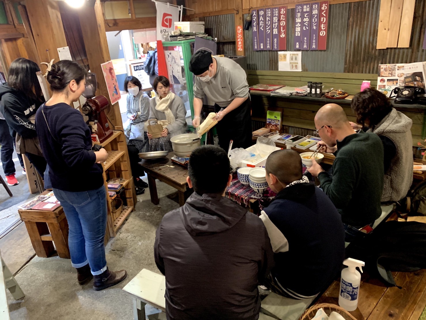 今回のイベントでは、2019年度に各地で調査した日本の麺文化事情についての報告と今後の展望について田中さんが講演。その後、ぬかだきやかまぼこ、てんぷらなど旦過の惣菜と相乗効果を生み出す「大學うどん」の製麺実演と実食が行われます。