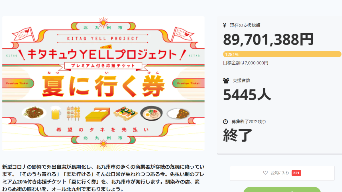 北九州市が中心となり取り組んでいた飲食店などの支援事業「キタキュウYELLプロジェクト」。