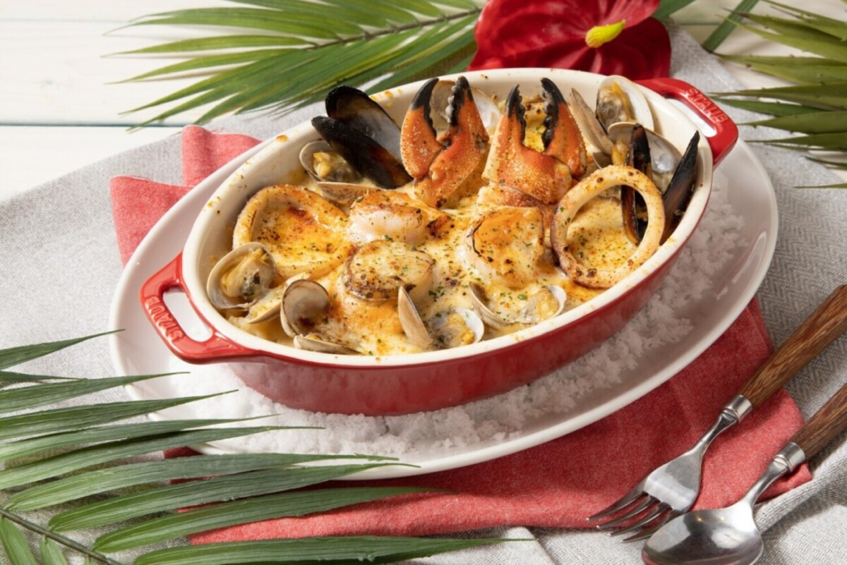 シーフードを贅沢に使用した熱々の「フィッシャーマンズライスグラタン」