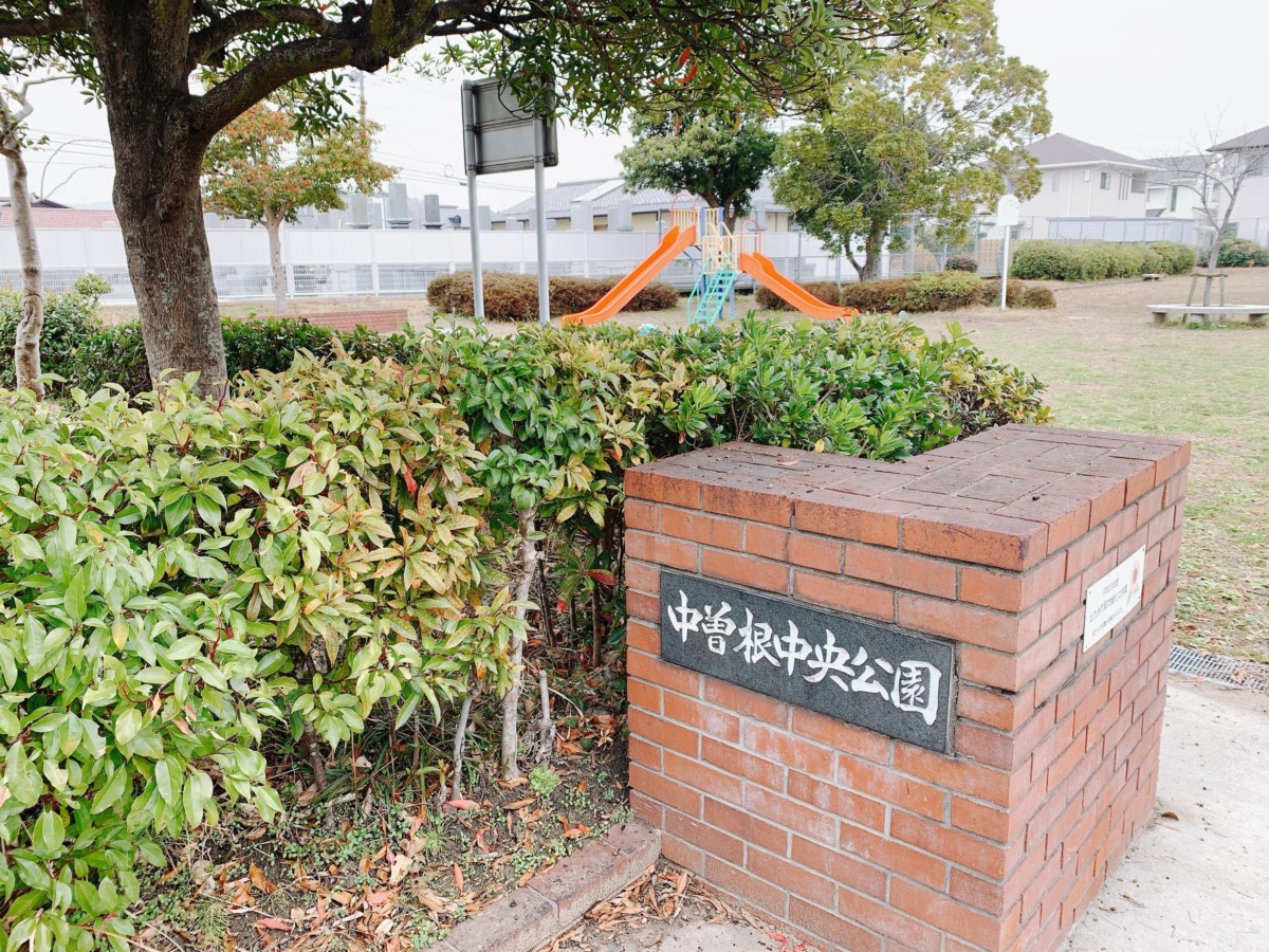 小倉南区の曽根小学校から徒歩5分。車がすれ違うのも難しいくらい狭い道に面している「中曽根中央公園」。