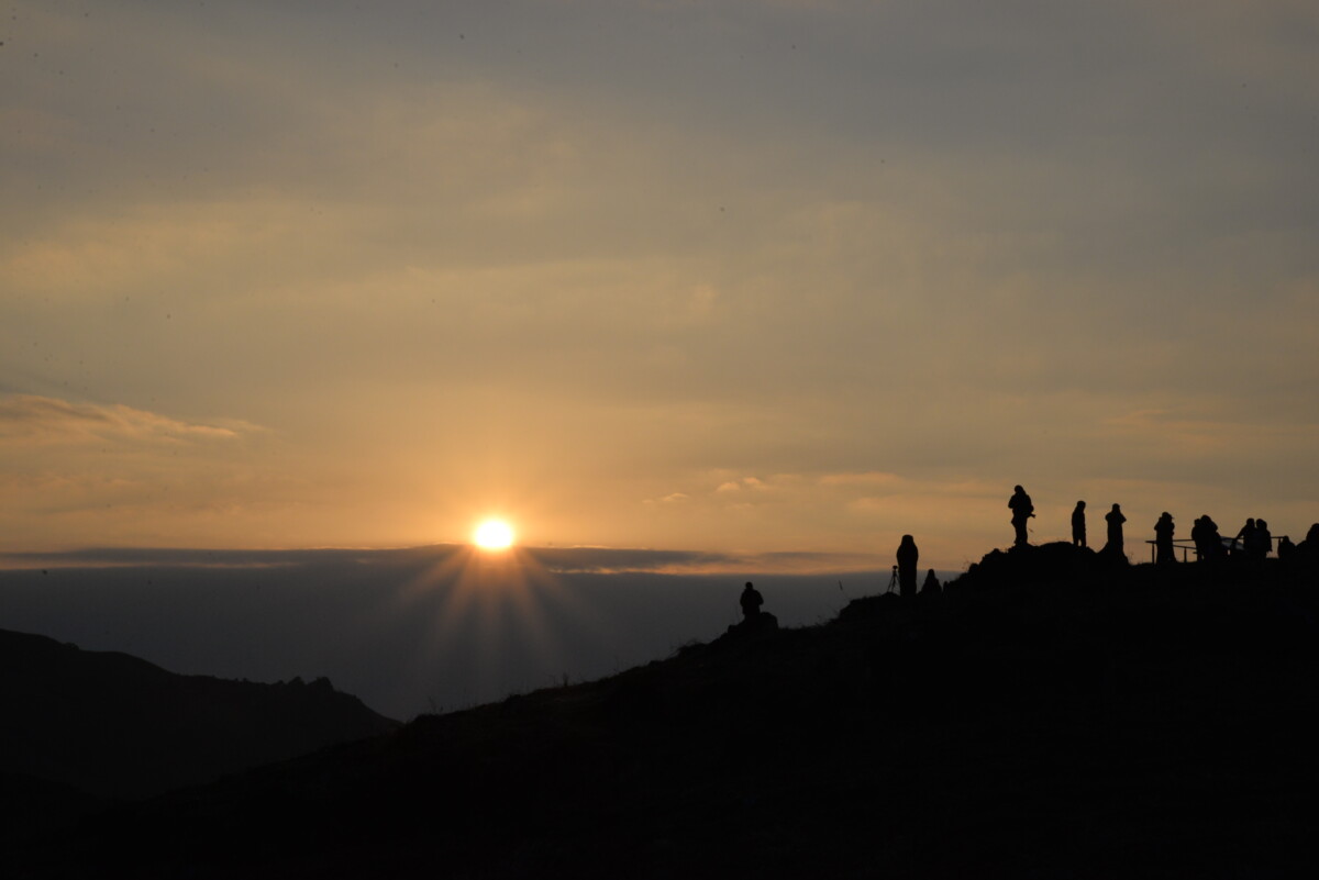 初日の出の時間に合わせ、小倉南区の「平尾台自然の郷」で毎年恒例の「平尾台初日の出会」が開催されます。