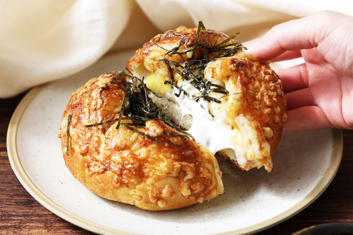 コクのあるチーズ感がたまらないパンの仕上げに塗られているのは、なんと「甘醤油」。とろけるチーズとほんのり甘じょっぱい甘醤油の組み合わせが食欲をそそります。また、中にはお餅も入っているので、“のび〜る”チーズと一緒にもちもちとした食感も楽しめる和風仕立てのチーズフランスです。販売期間は12月26日(日)から2022年1月14日(金)まで。