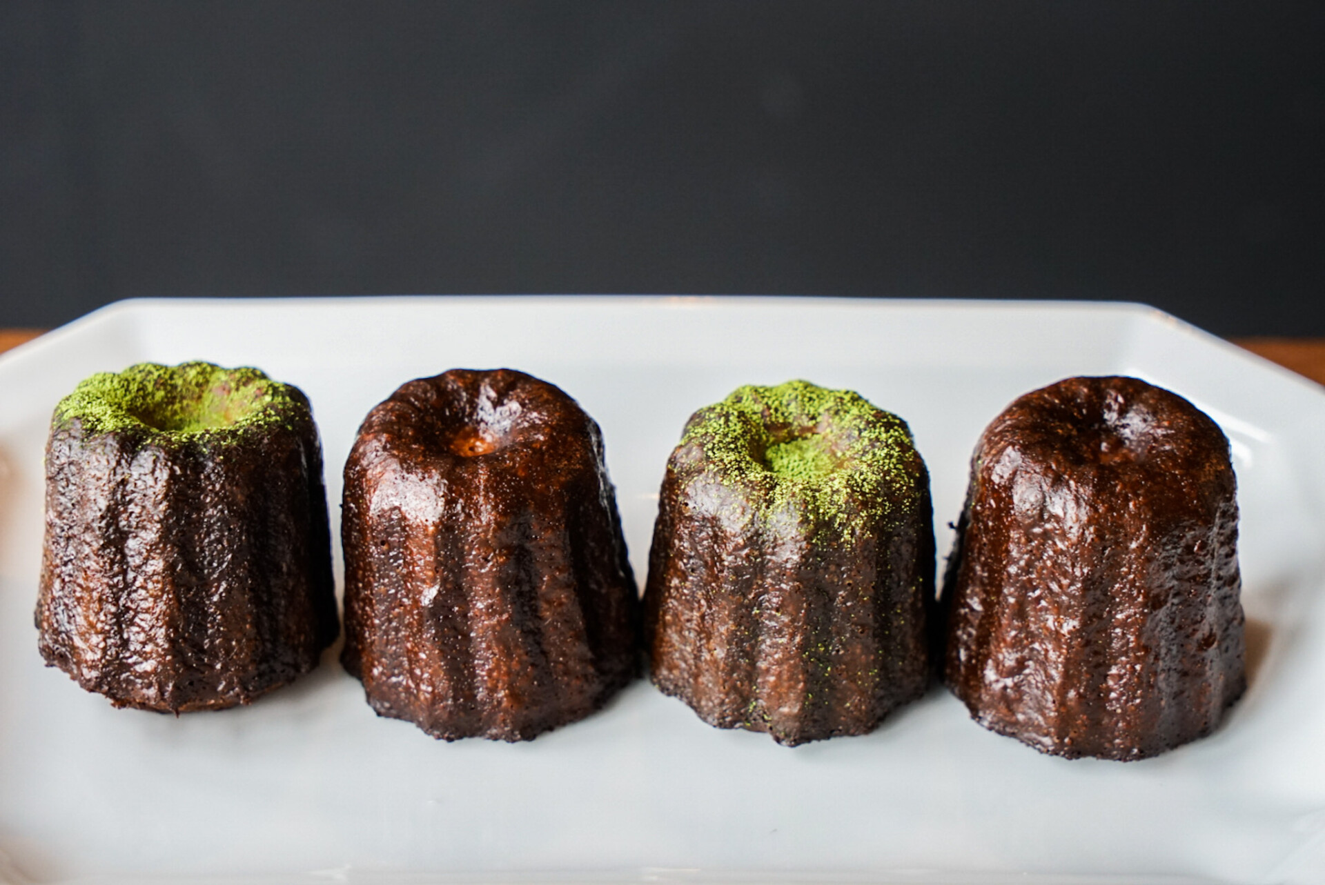 店内で毎日焼き上げられるフランスの伝統菓子「カヌレ」は、プレーン(バニラ)・抹茶・シナモンの3種類が日替わりで店頭に並びます。外はカリッと、中はしっとりもちっとした独特の食感が人気を集めるカヌレは、ティータイムや手土産にピッタリ。注文後にあんを詰めるパリパリ食感のもなかもオススメです。