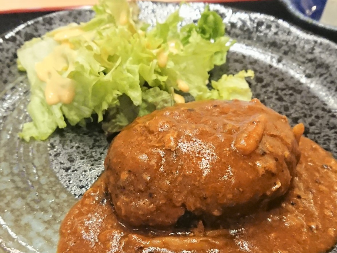 ランチメニューは「日替わり定食」「煮込みハンバーグ定食」「塩サバ定食」「唐揚げ定食」「チキンカツ定食」。店内はテーブル席のほか、カウンター席もあるので、1人でも利用しやすく、買い物途中やバスの待ち時間にランチをさくっと楽しむのにもピッタリです。