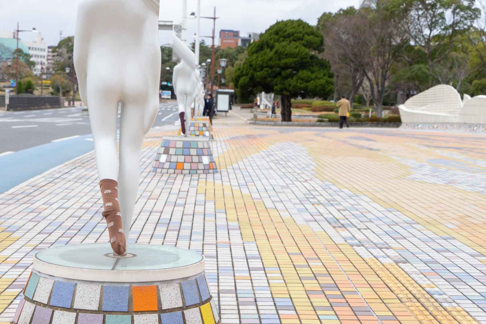 頭部がマカロニ状の筒型のため、北九州市民には『マカロニ星人』と呼ばれ、親しまれているオブジェですが、毎年冬になるとなぜか靴下を履いているのです。