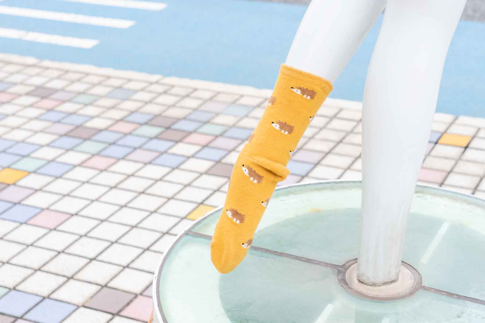 この話を聞き、撮影のために改めて出かけてみると、この日は全員靴下のみ。全員揃って左足に靴下を履かせてもらっています。