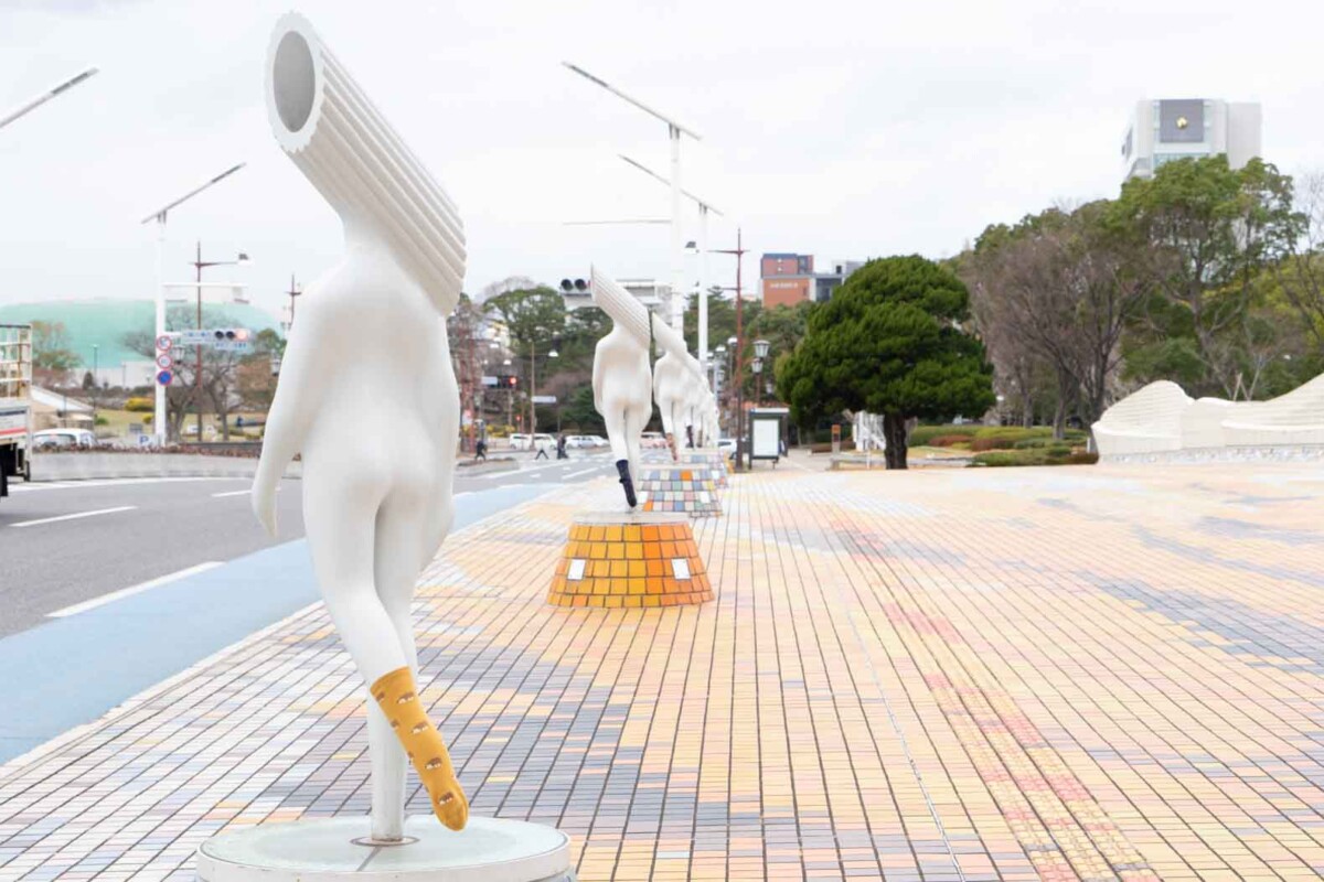 ちなみに『マカロニ星人』の正式名称は『宇宙七曜星の精』。グラフィックデザイナーの故・福田繁雄さんが手掛けたオブジェで、春分・秋分の前後に太陽の光が頭部の空洞に差し込み、歩道上に北九州市の市花「ヒマワリ」の影ができる仕組みとなっています。