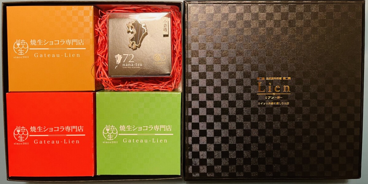 そんな「ITOHEN」と、八幡西区に本店を構える「焼生ショコラ専門店Gateau-Lien(ガトーリアン)」がコラボ。バレンタインデー特別企画として、「TSUNAGARU」が発売されました。「九州伝統織物ピンバッジ」とガトーリアンの「焼生ショコラ」(3種)がセットになったもので、大切な人との「繋がり」を感じてほしいという想いが込められています。