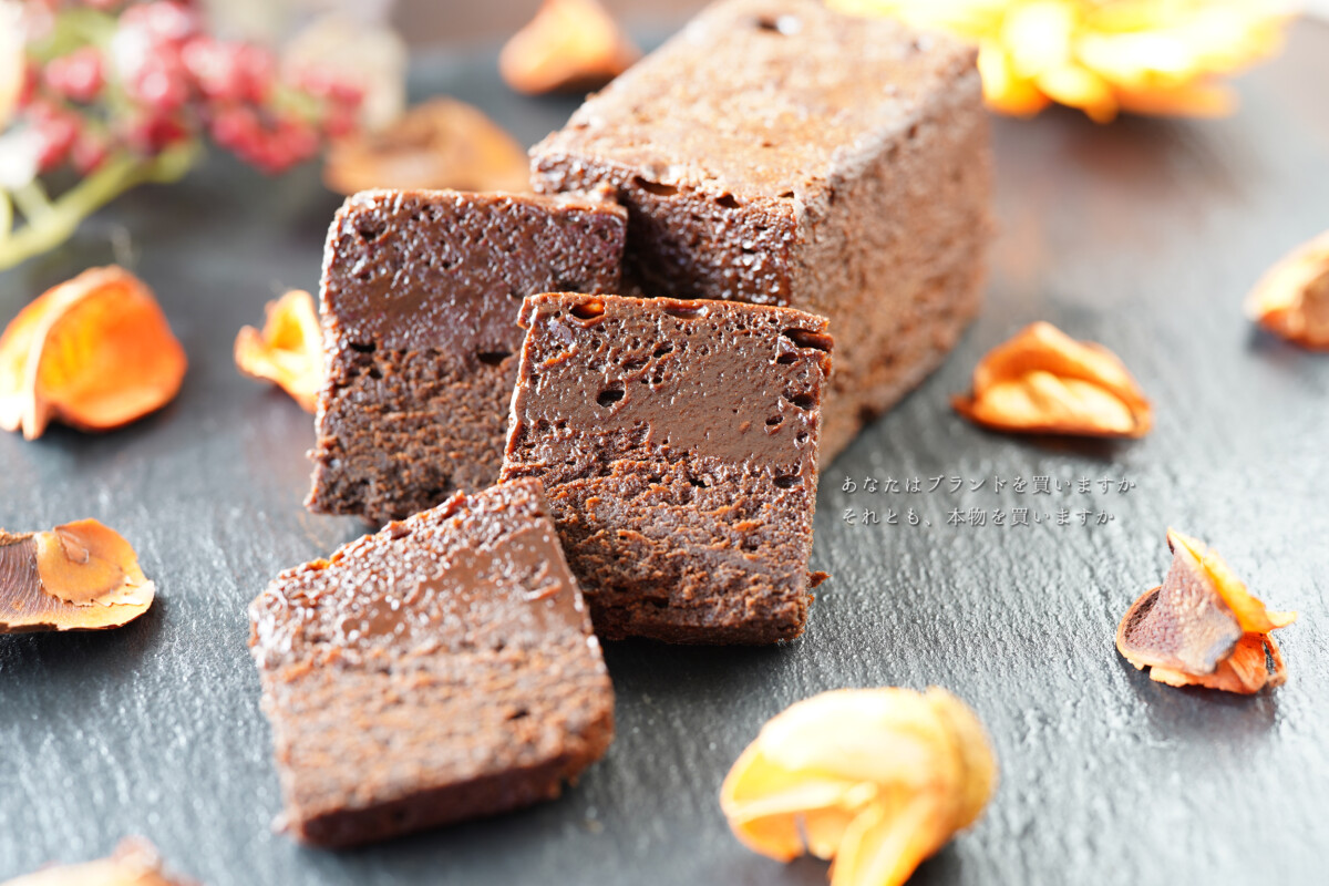 ガトーリアンの「焼生ショコラ」は、小麦粉を一切使わず(グルテンフリー)、素材の個性を最大限に引き出すことで、驚くほど濃厚で滑らかな口溶けに仕上げられています。焼いているのにまるで生チョコかのような食感を楽しむことができます。