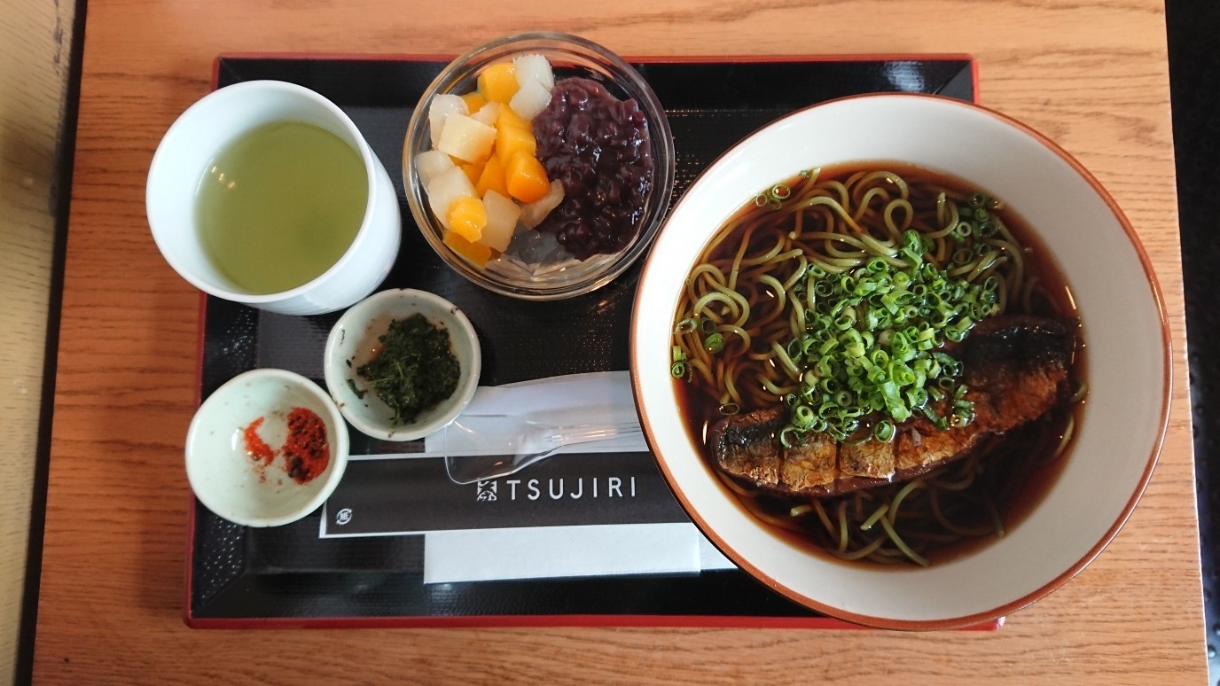 京都の名物のひとつ「にしんそば」。「にしん」は甘辛く炊き甘露煮に調理されます。辻利ではその「にしん」と、宇治抹茶を使用した「茶蕎麦」で提供しているのです。にしんはビタミンやミネラルを含んだタンパク源。健康食材の蕎麦を合わせることで、栄養バランスの取れた食事となります。