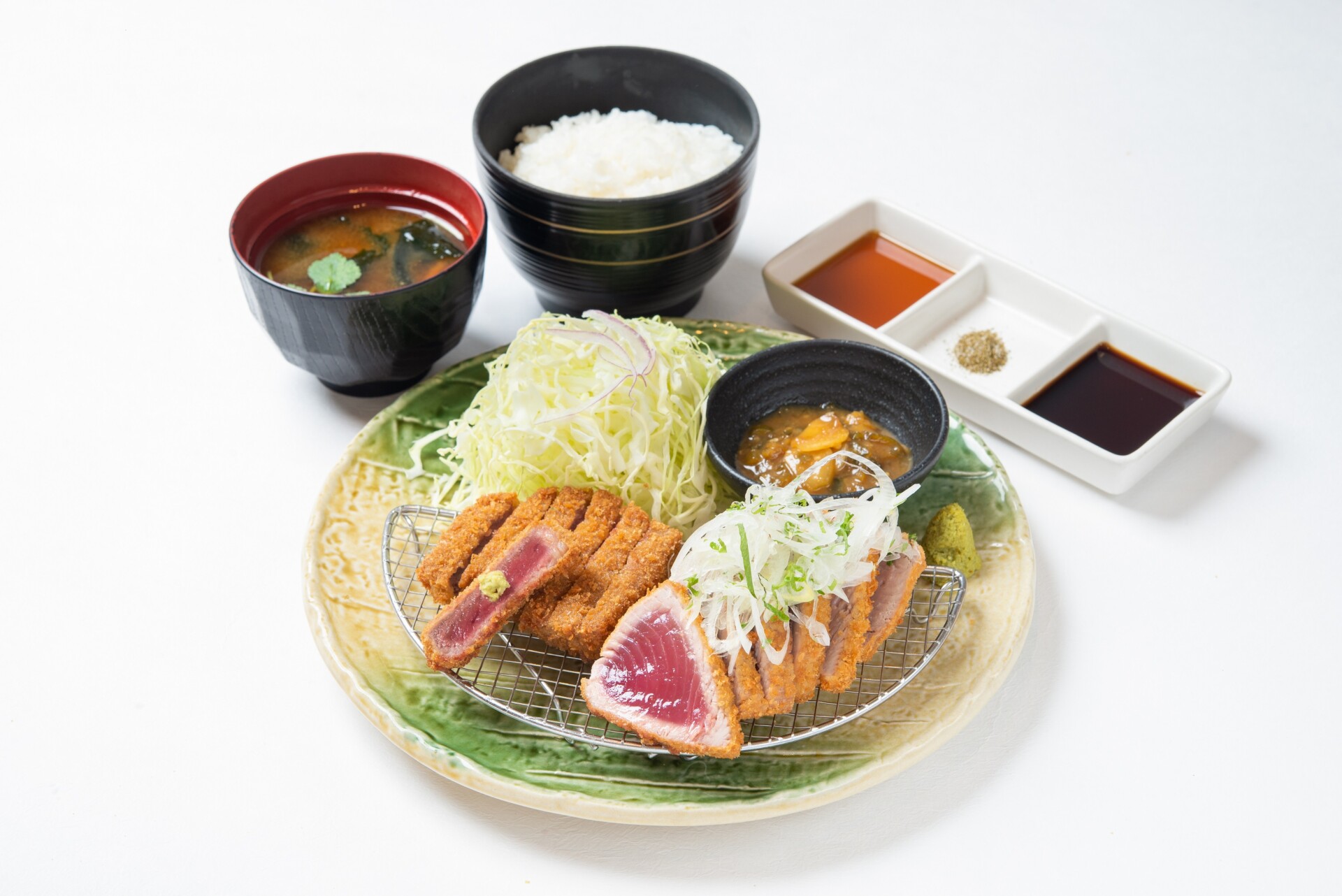 「牛サーロインカツと初鰹カツ膳」と「牛ロースカツと初鰹カツ膳」の2種類があります。