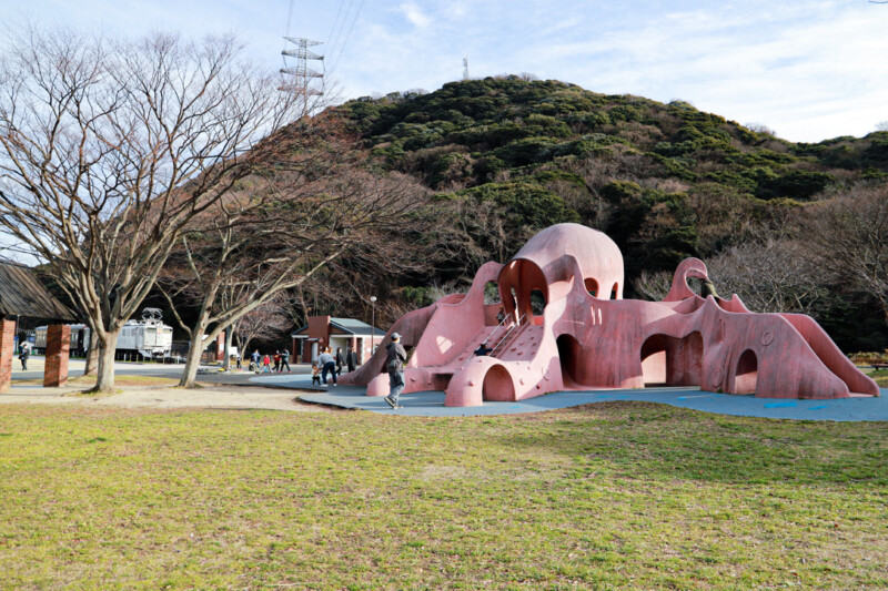 「関門海峡めかり駅」のそばには、大きなタコ遊具がある和布刈公園があるので、タコすべり台で思いっ切り遊んだり、海沿いを散策したり、親子でのんびりした時間を満喫できます。