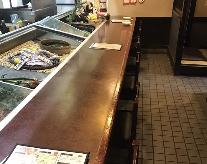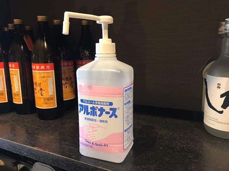 「炉ばた焼き 巌流」(※紹介ページはこちら)では、客席を3分の2に減らし、店内飲食を再開しています。大将は「入り口にアルコール消毒を設置し、お客さまが帰ったあとの消毒や、調味料の入れ替えも行っています」と説明します。