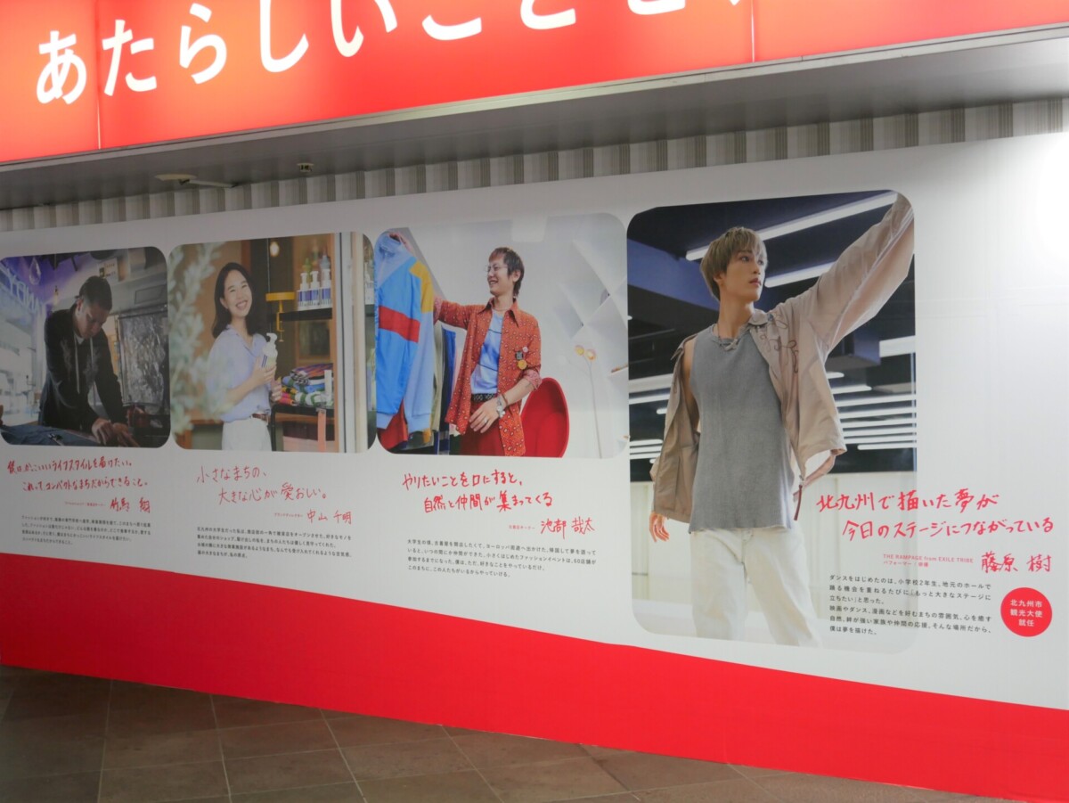 この大型PRボードには、北九州市観光大使のTHE RAMPAGE・藤原樹さんをはじめ、北九州市にゆかりのあるアーティストや起業家へのインタビュー記事が掲載されています。
