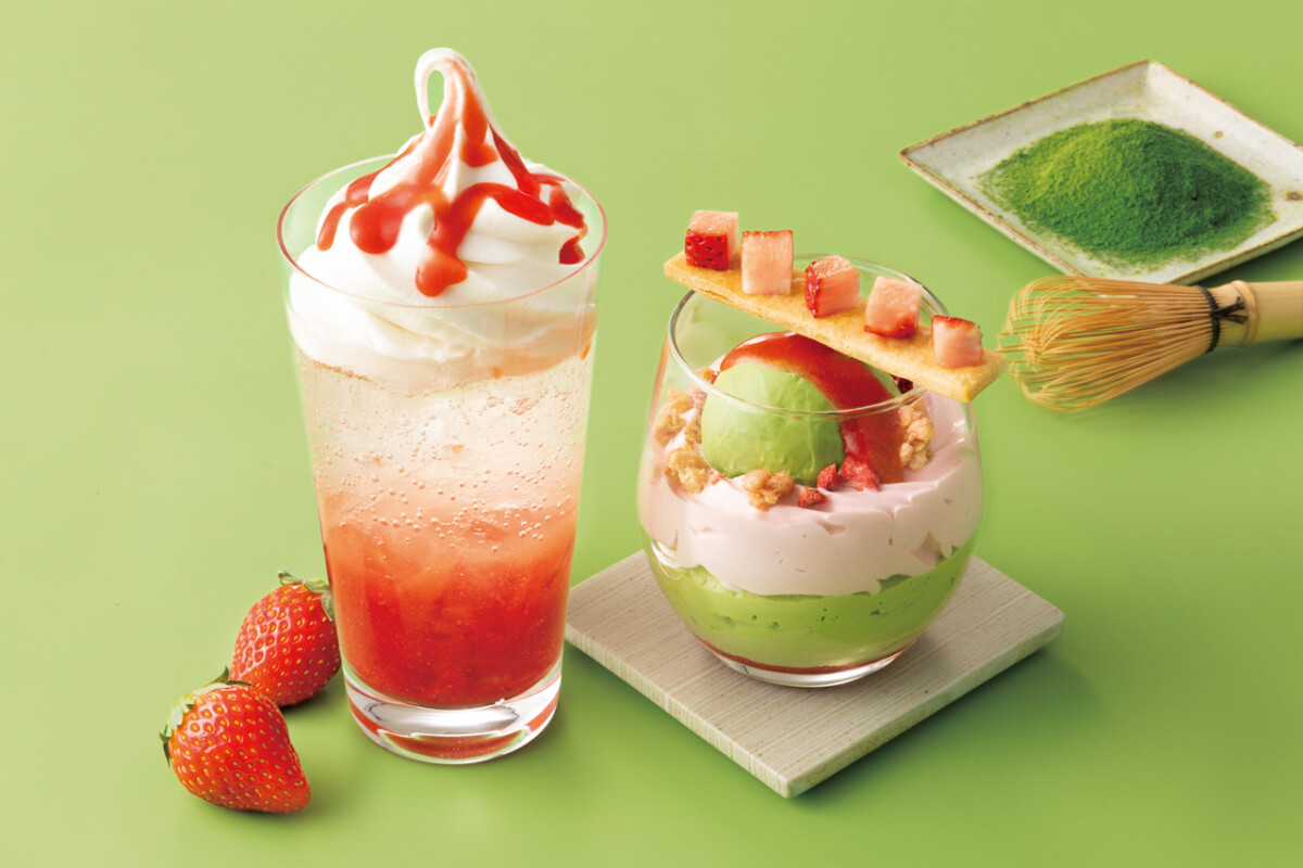今回登場する季節限定メニューは、「ストロベリー抹茶グラス」「ストロベリー抹茶グラス」の2種類。