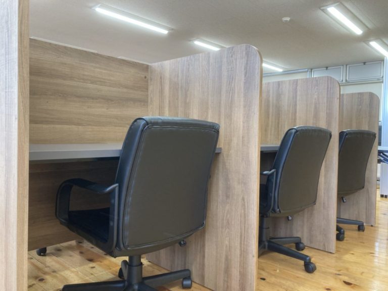 「テレワークステーション」と名付けられたコワーキングスペースは、完全会員制。高速Wifi、電源、使いやすいデスク、疲れにくいイス、フリードリンクを完備しており、仕事場や自習室、読書室として利用できるとのことです。パーテーションで仕切られた独立した広いデスクのほか、テレワークにピッタリなブース席も用意。ブース席であれば、テレビ会議中に後ろを人が通る心配もないので安心です。