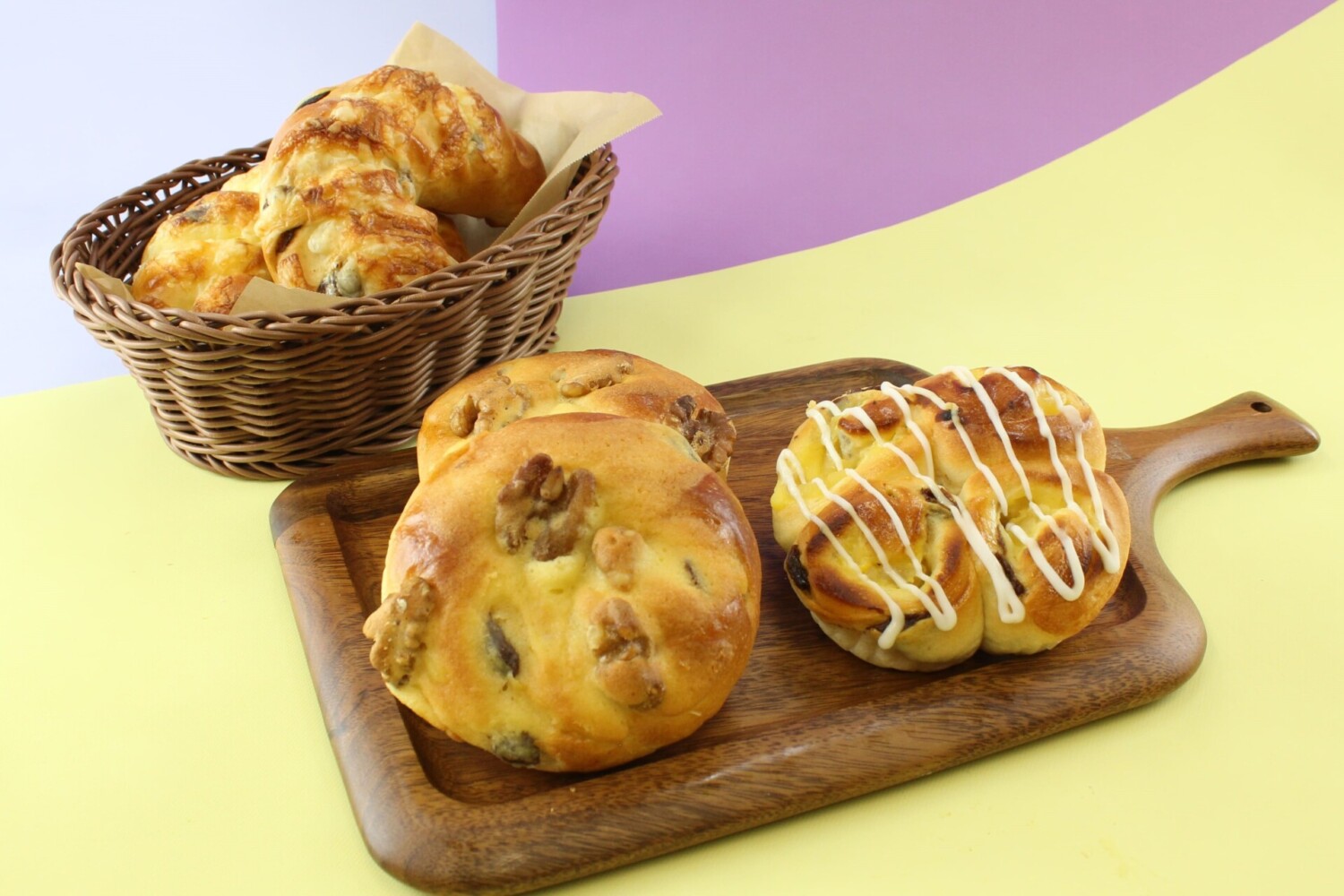 レーズンにクリームチーズフィリングとシュレッドチーズを組み合わせた「レーズンフロマージュ」や、酸味のあるレーズンと香ばしいくるみに、甘いクッキー生地が相性抜群の「レーズンくるみ」、レーズンの入った生地にカスタードクリームとアップルプレザーブを巻き込んだデザートパン「りんごレーズン」と、同店で定番のレーズンパン3種もフェアを彩ります。