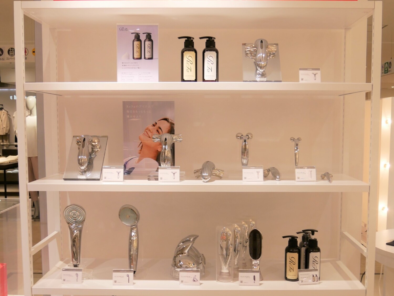 さまざまな美容アイテムが揃う「Refa(リファ)」の品揃えが充実していることも「ビー・モア」の魅力の一つ。人気の高い美顔器はもちろん、シャワーヘッドや頭皮ケアブラシなど、シャンプー・トリートメントなども揃っています。