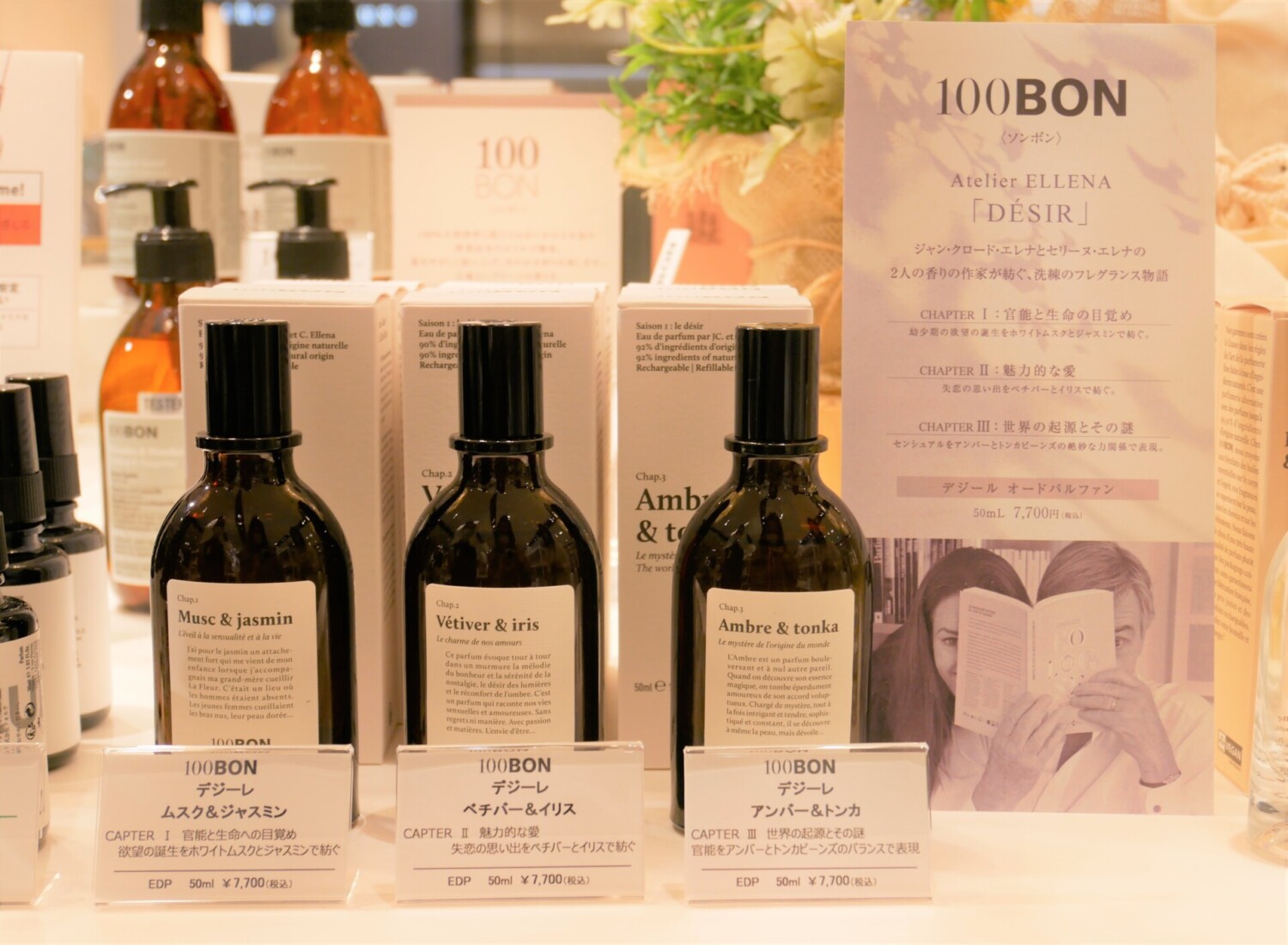 また、フランス・リヨン発「100BON(ソンボン)」のフレグランスでの注目は、エルメスの専属調香師を務めたことで知られるジャン・クロード・エレナとその娘、セリーヌ・エレナとのコラボレーションで誕生したシリーズ。北九州市内ではここでしか取り扱いがないというレアな一品です。