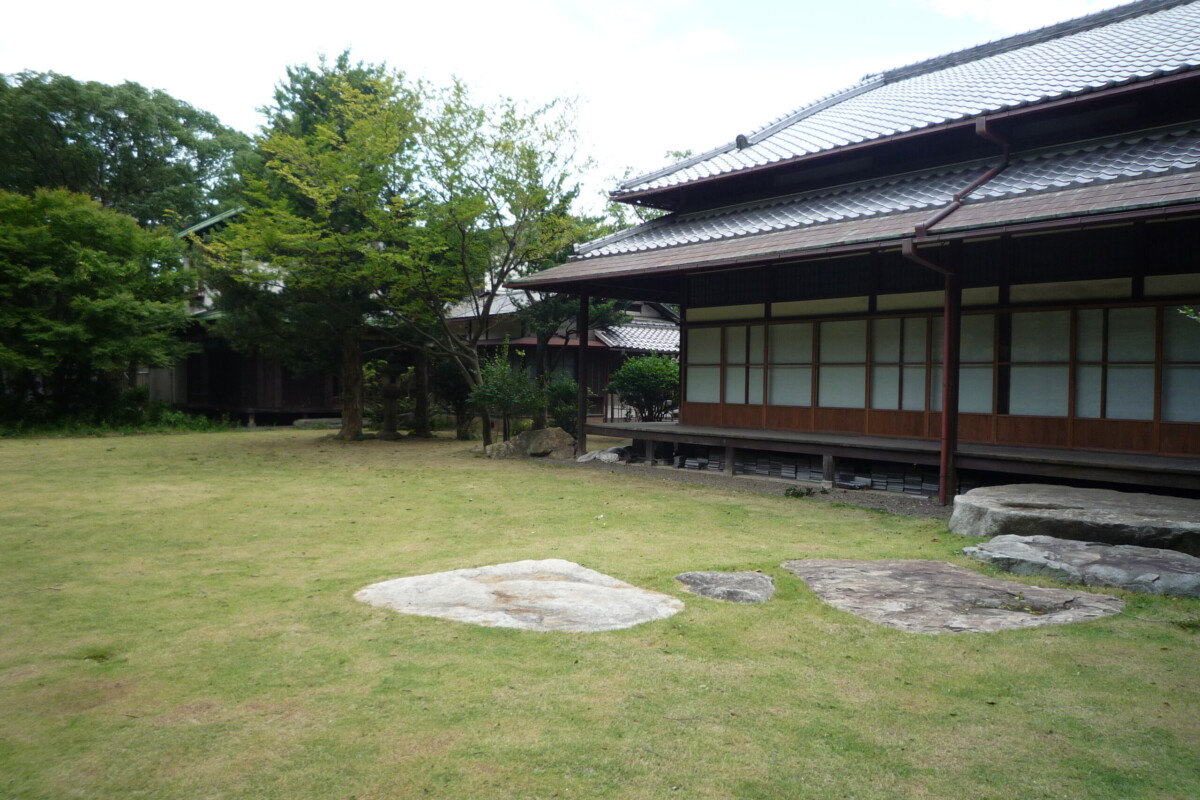 また、庭の方から建物の裏手を見ると、完全な洋風建築ではなく、和風の座敷があることも分かります。珍しい建物なので、訪れた際は表からだけでなく、裏からも見ることをお勧めします。