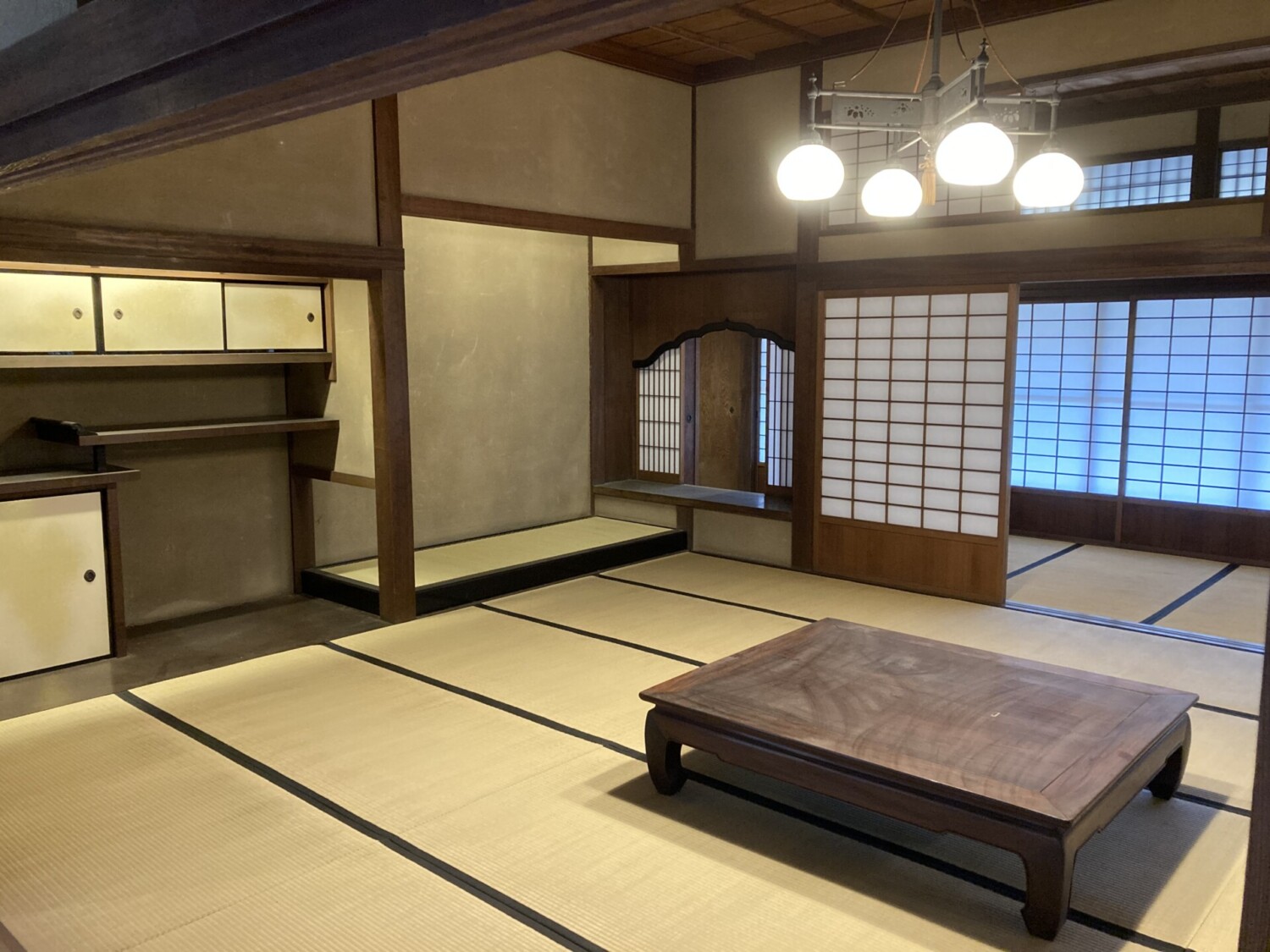 この大座敷棟の中心となる部屋が、官営八幡製鐵所を誘致するための最初の会談が開かれた「大座敷」。床の間などがある15畳の「大座敷」と10畳の「次の間」の二間続きとなっています。