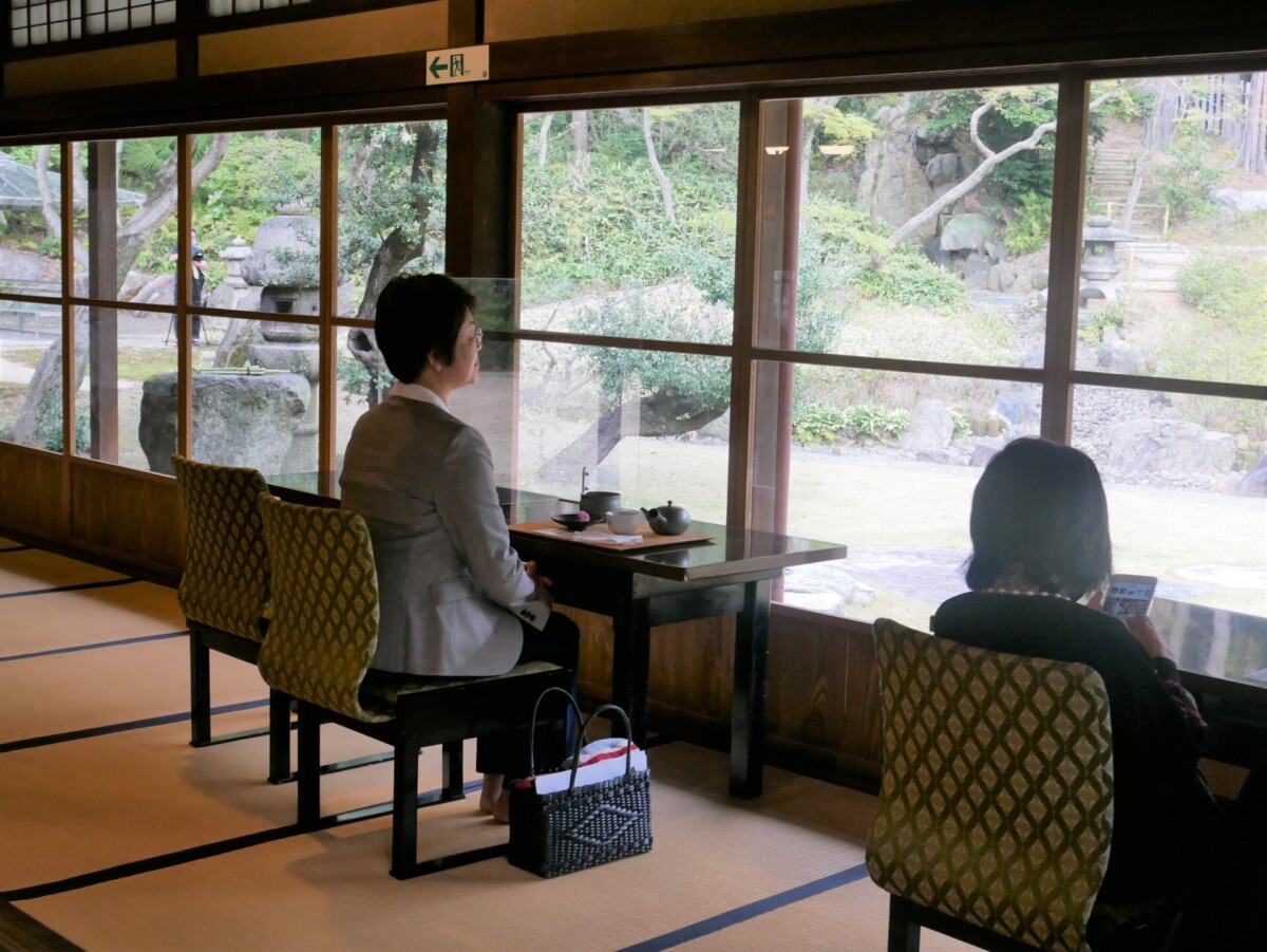 「茶室」は奥につながる「大座敷」と一対をなす接客空間として本館棟の改築に合わせ移転、改築されました。