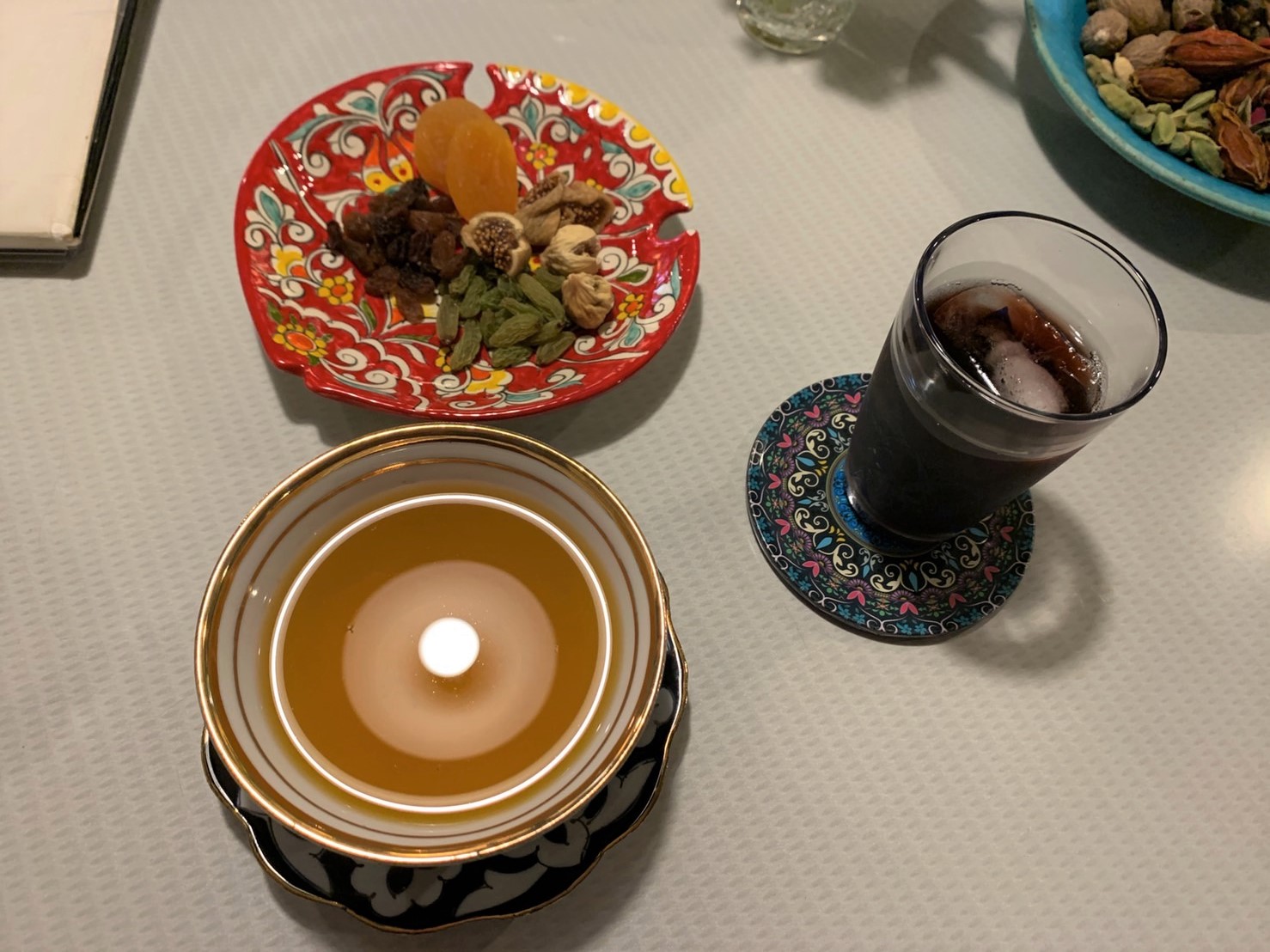 また、ウイグルチャイにはドライフルーツがお茶うけとして付いてきます。こちらはウイグルやトルコ、イランで採れるフルーツがメインとなっています。ドライフルーツの自然の甘みと、ウイグルチャイのスパイシーさの相性は抜群でした。