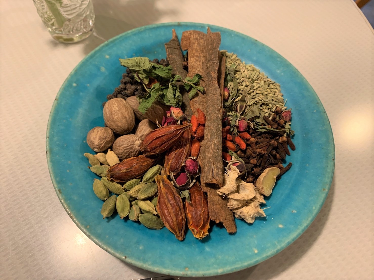 ウイグルチャイは、シナモン、ナツメグ、ブラックペッパー、生姜、ミントなどの10数種類の原料から作られるお茶だそうです。中には、杏仁豆腐で親しまれているクコや、クチナシなど、お茶にはめずらしいものも見られました。チャイなのに、紅茶が入っていないのもびっくりですね。日本でいうと、ハーブティーに近いのかもしれません。