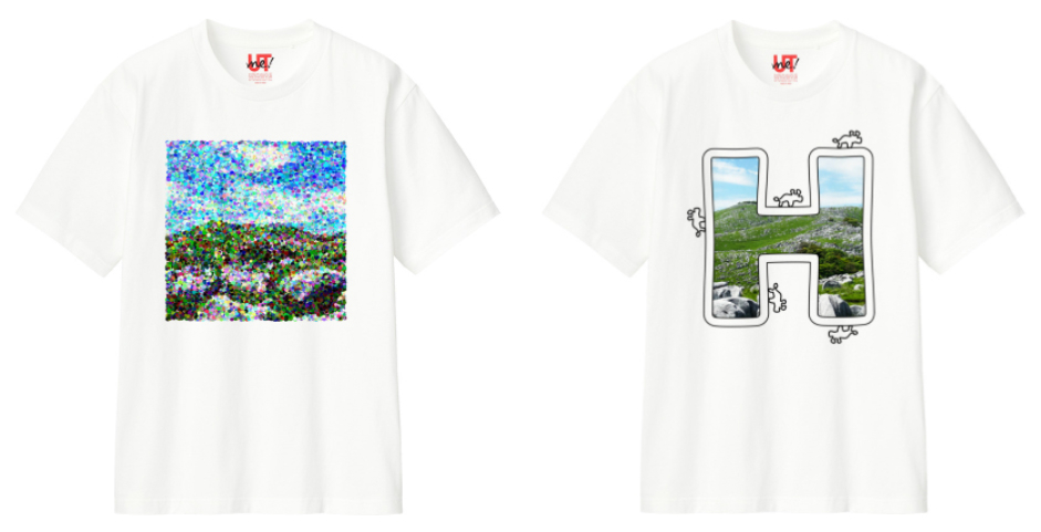 アートな平尾台をデザインしたものと、穴熊のイラストがアクセントになったもの、2種類のオリジナルTシャツは、それぞれ2490円(別途送料が必要)。ユニクロオンラインストア UTme!ページからのみ購入でき、店舗での販売は行われません。