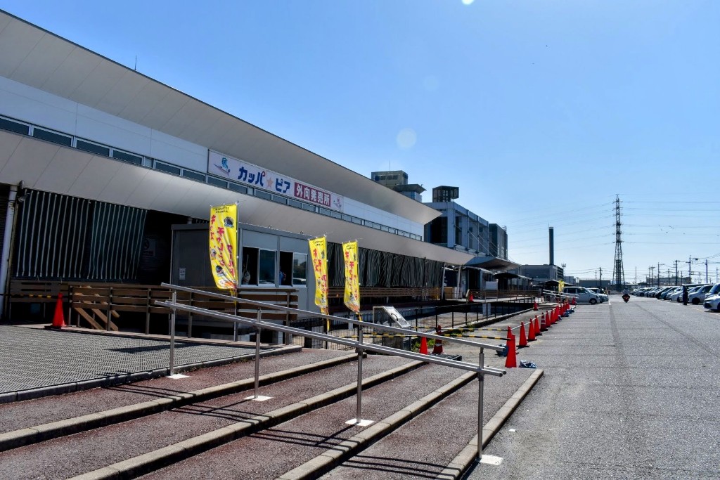 わかわくらんどは別棟にあるのでいったん外に出ると、なんと目の前はレース会場。取材日はボートレース開催中だったので、選手たちが目の前をビュンビュン走っていました。