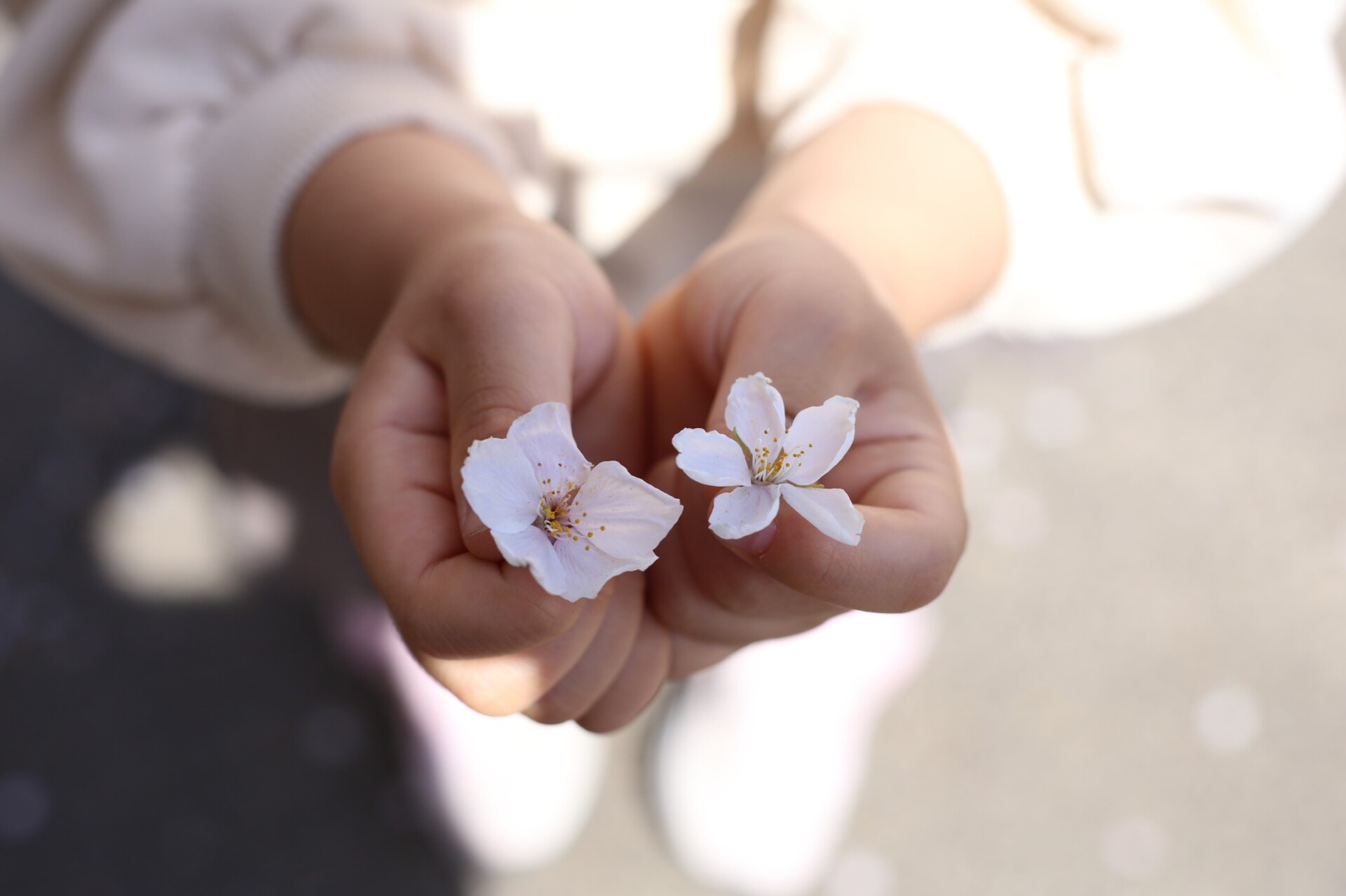 一緒にお出かけしていた娘が落ちていた桜の花をくれました。