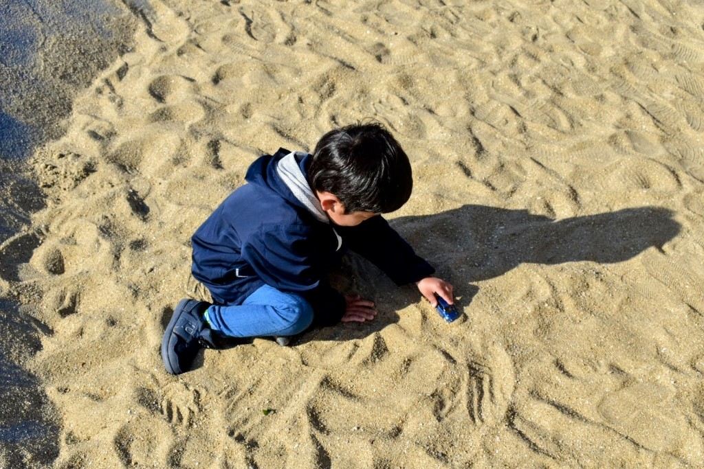 そしてそんなお兄ちゃんたちの足元で、持参した車を走らせる我が息子。クッション代わりの砂場がオフロード気分でちょうどよかったようで。