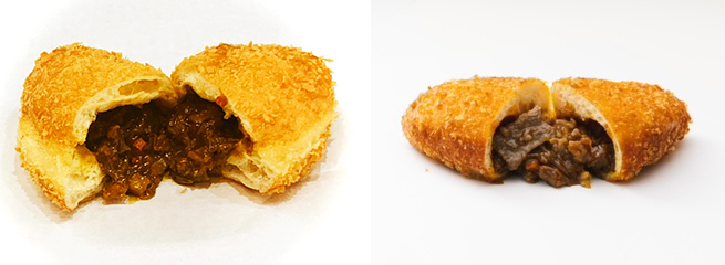 「牛肉の旨味たっぷりこだわりビーフカレーパン」(写真左)と「【広島黒毛和牛使用】黒毛和牛カレーパン」(同右)