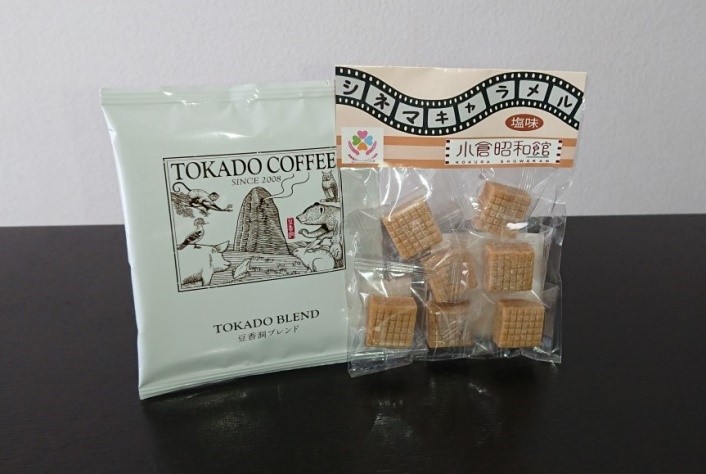 また、「シネマキャラメル」は、小倉南区にあるソーシャルファーム髙山(障がい者の自立支援企業)から販売のオリジナル。「塩味」とありますが、本当に優しい風味で懐かしい口当たりですよ。鑑賞のお供にいかがでしょうか。