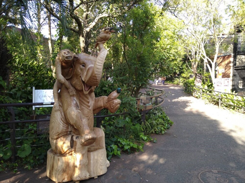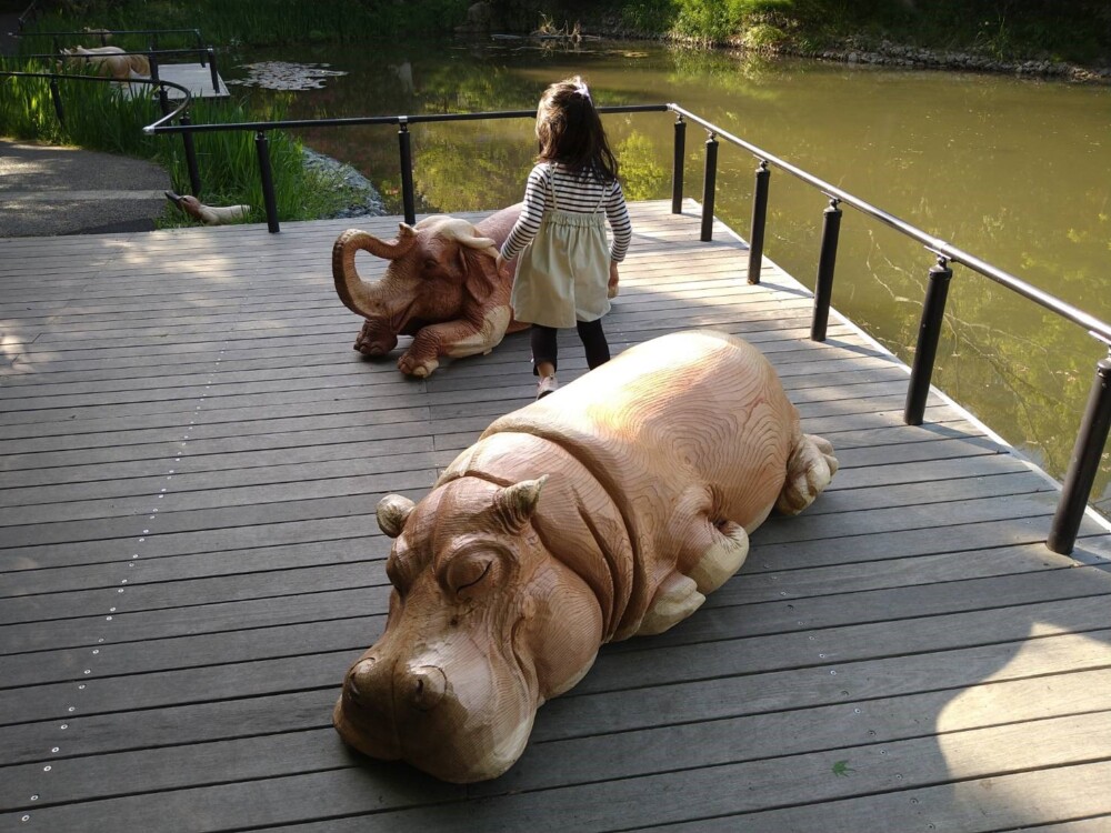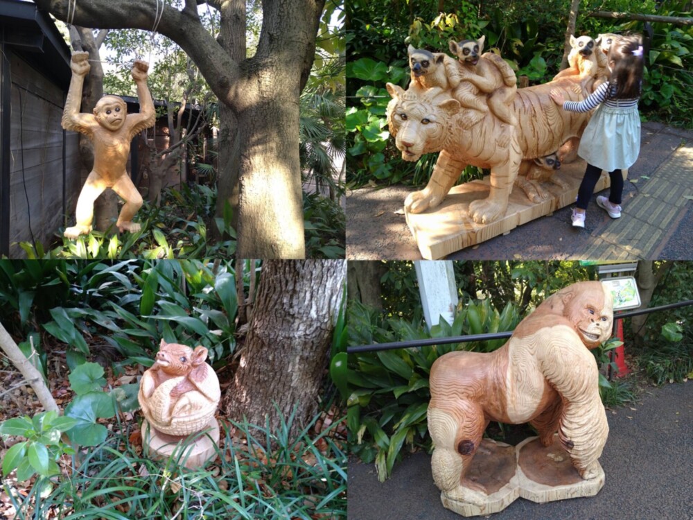 他にも園内には至るところに、動物たちの木の彫刻が出現していました!