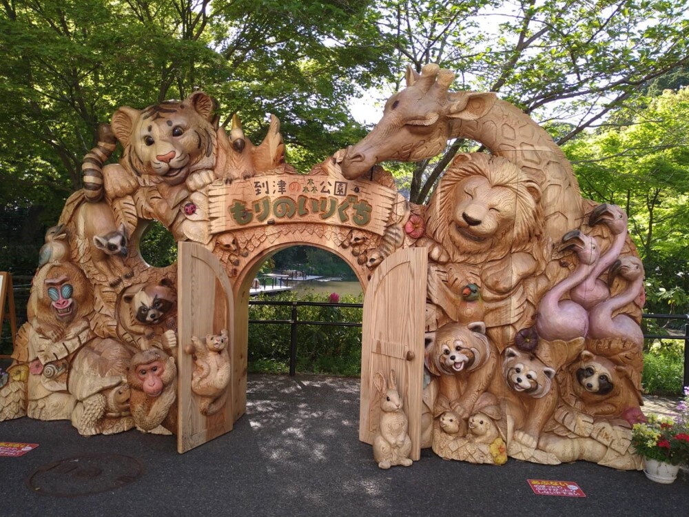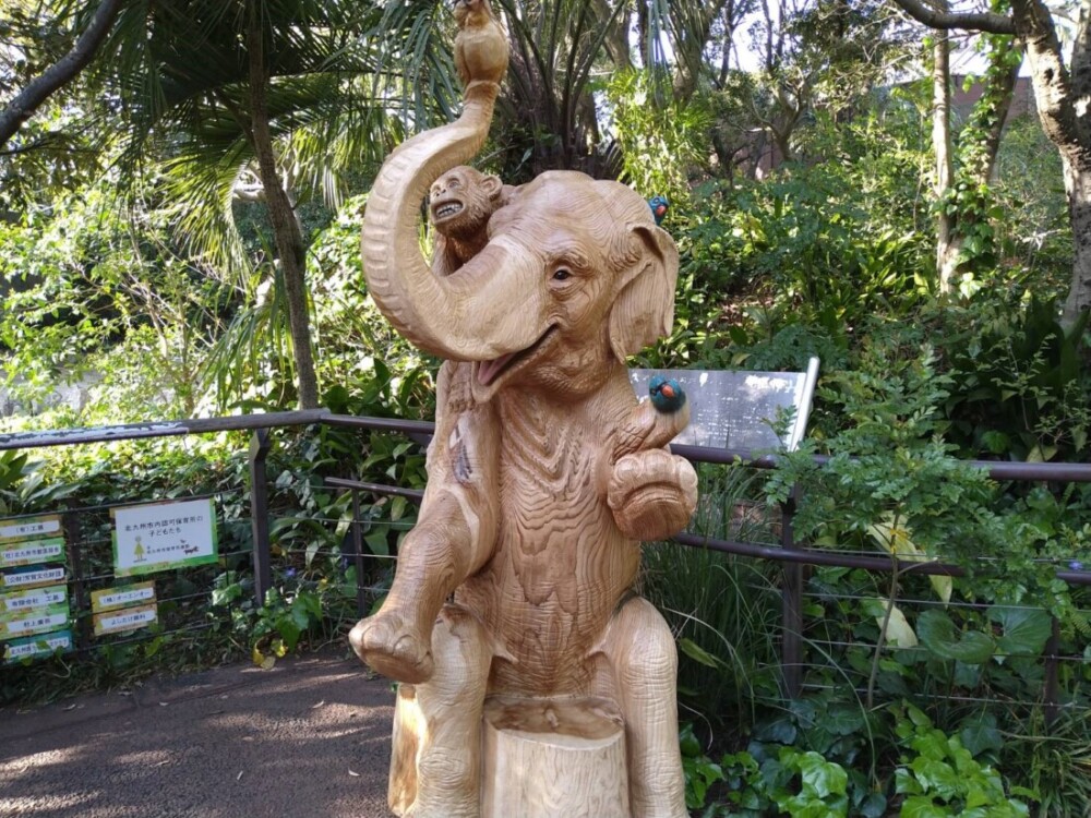 実はこれ、開園20周年を記念した企画、「到津の森公園開園20周年記念 到津の森と木の動物たち2022〜チェンソーカービング林隆雄展〜」。