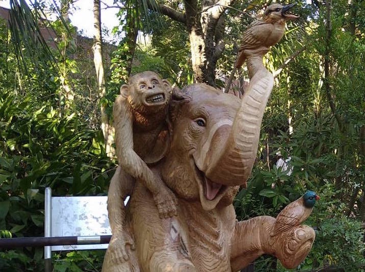 他にも園内には至るところに、動物たちの木の彫刻が出現していました!