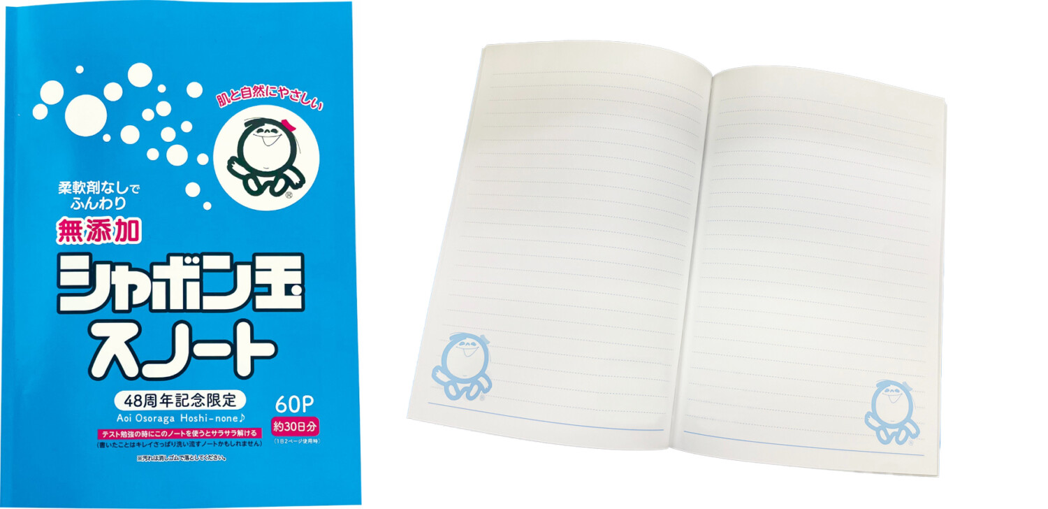 また、上記通信販売では、A5サイズの48周年アニバーサリーノート「スノート」も数量限定で販売中。