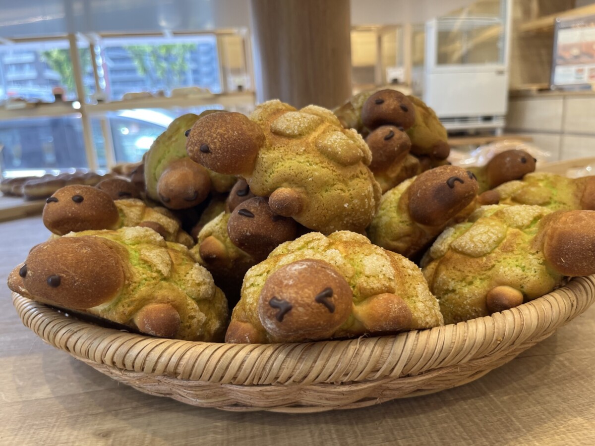 カメの姿の「かめメロンパン」(243円)は、よく見ると笑っていたりウインクしていたり。見るだけでも楽しめます。