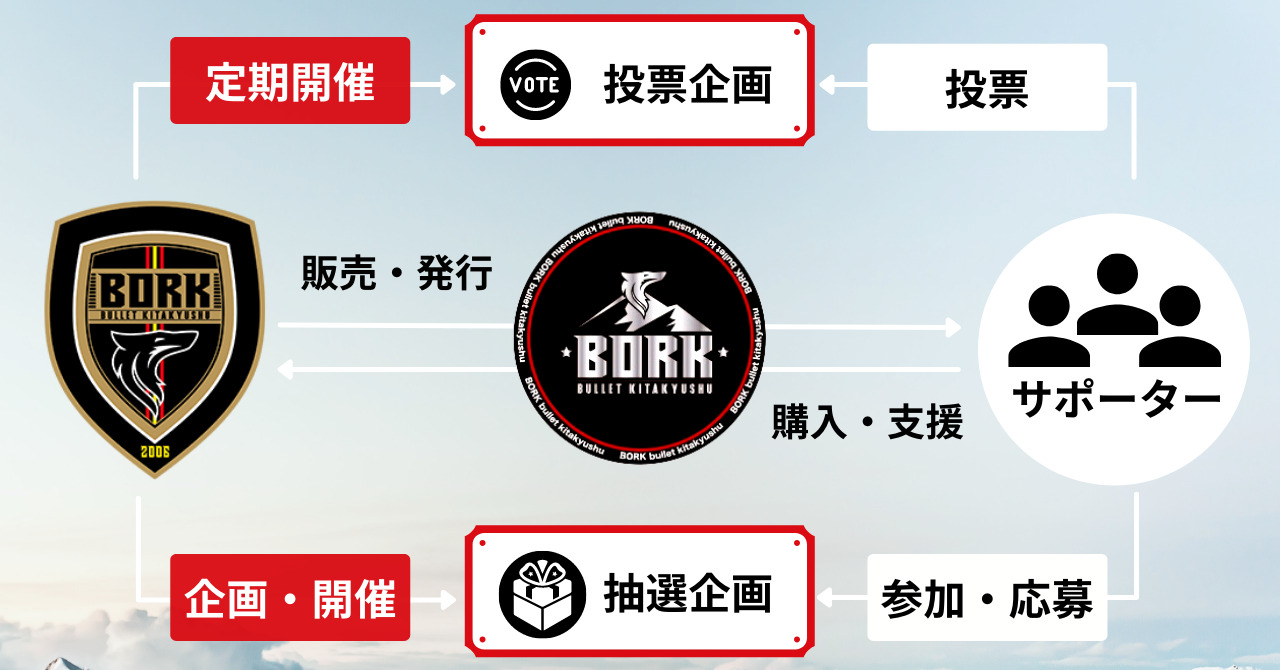 ボルクバレット北九州トークンはクラブへの応援の『しるし』や『証』の役割を果たすほか、保有することでクラブ発の投票企画への参加やトークン保有者限定の特典への応募ができるなど、新しい体験ができるデジタル上のアイテムとのことです。