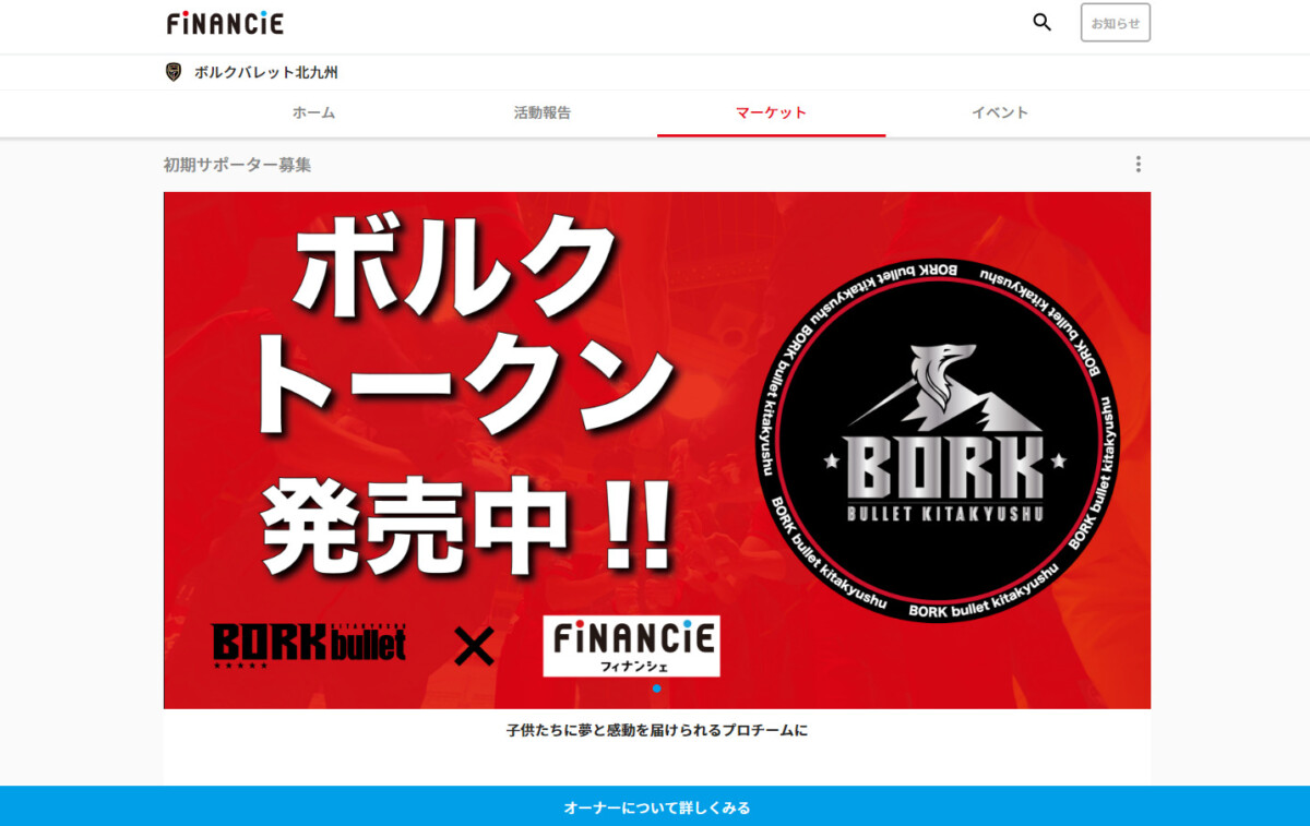 エンターテイメントとしてのフットサルを提供するために、ボルクバレット北九州のトークンを通じて、サポーターがイベント制作のプロセスから参加できる新たなコミュニティ運営をフィナンシェが支援することに。