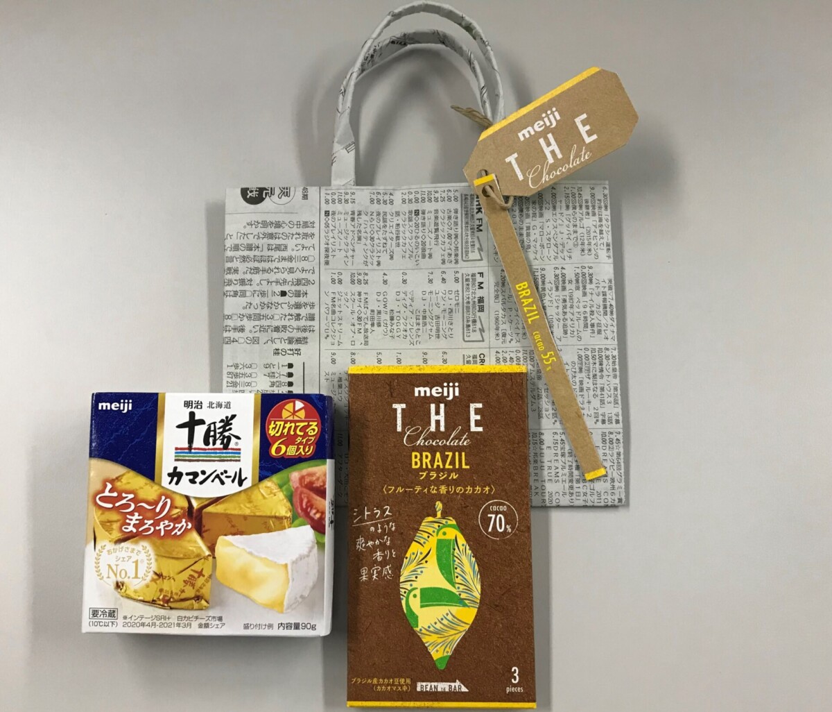 参加者には株式会社明治の「ザ・チョコレート(2種)」「北海道十勝 カマンベールチーズ」「北海道十勝 生モッツァレラ」がそれぞれプレゼントされるという嬉しいおまけも!