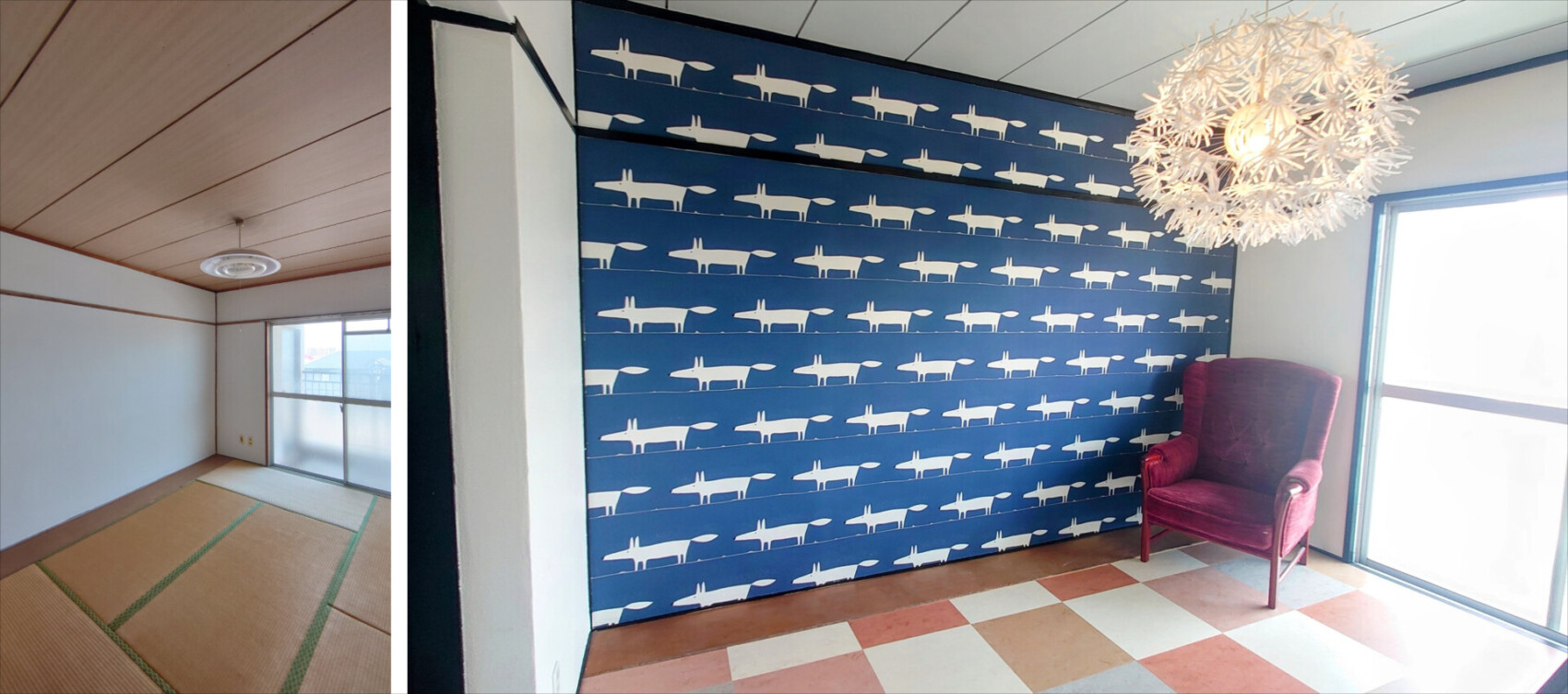 同様に「使えるものは捨てずにちゃんと使ってあげたい」と、壁紙や床材などは端切れとして処分予定だったものを仕入れ、できる限りすべてを活かせるよう、サイズやデザインが異なるものを一つ一つ組み合わせながら、個性あふれる部屋の一部として命を吹き込む作業を行っています。