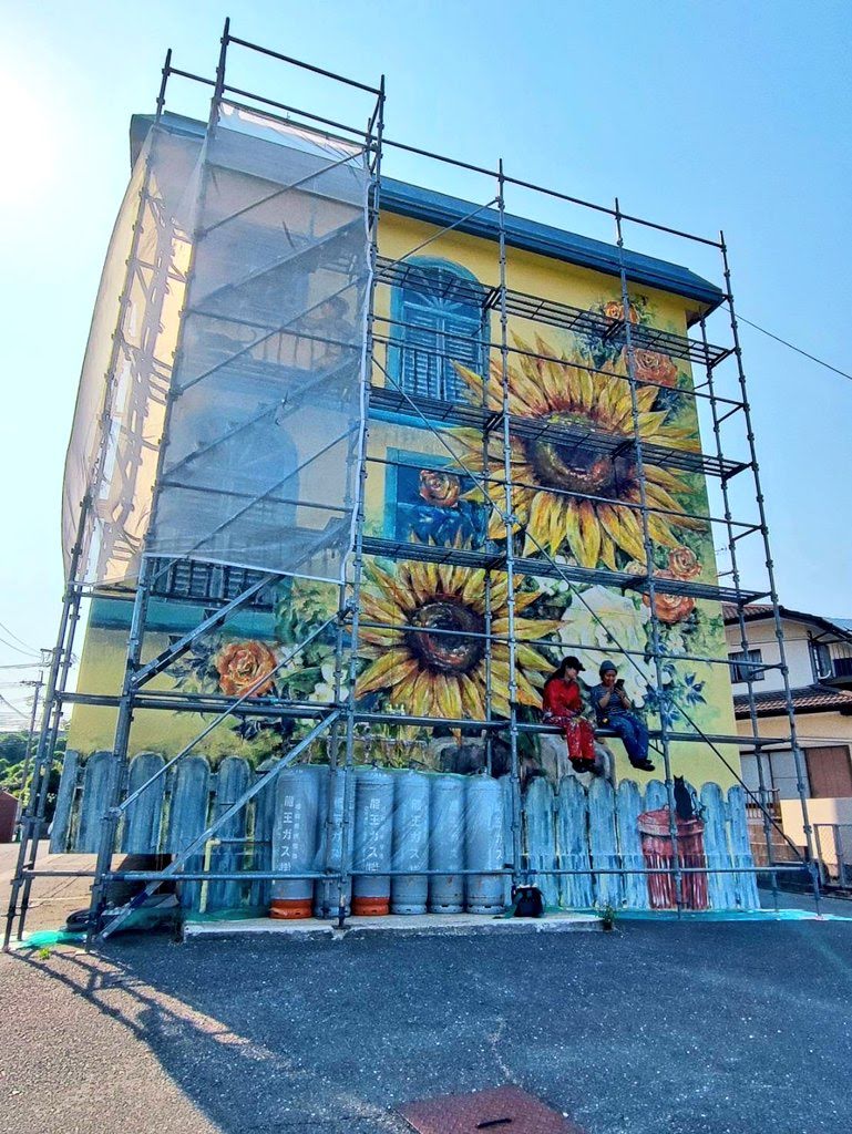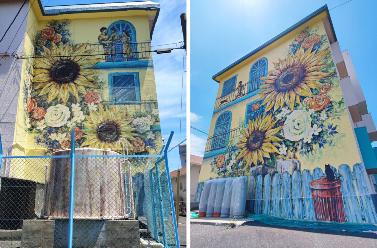 外壁にアート? ヒマワリと家族が描かれたリノベアパート出現【北九州市小倉南区】