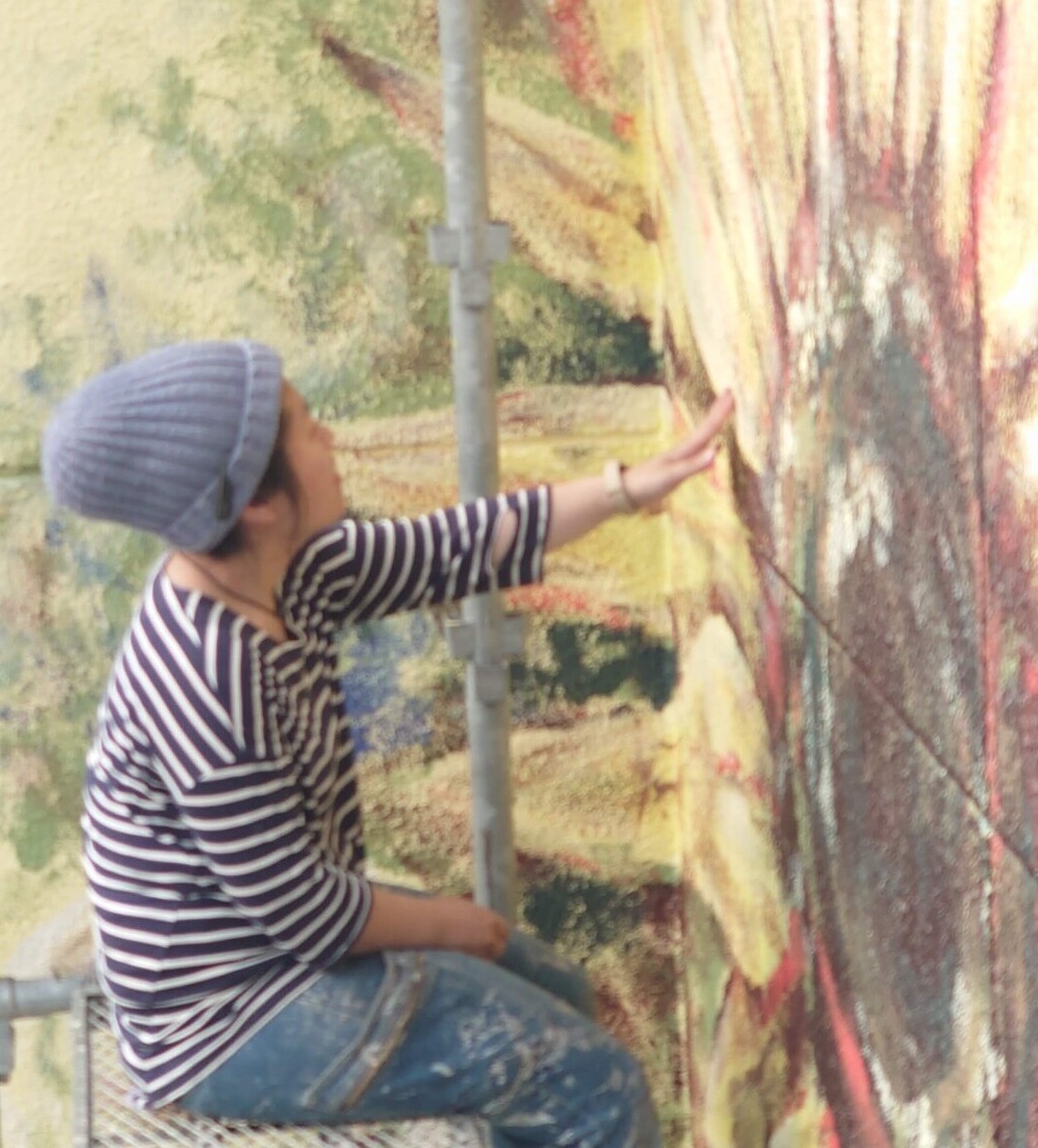 アパートの前で足を止めて、じっと壁画を眺める人も多く、いつ完成するのかご近所さんたちも楽しみに待っていた様子が伝わってきました。