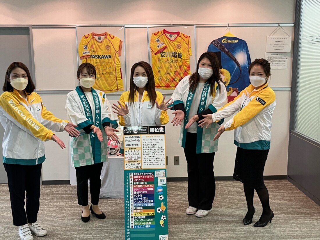 また、同社では『全員がサポーター』を合言葉に、従業員も自らスタジアムに足を運び、サポーターの皆さんと一緒にJリーグの魅力を肌で感じているとのこと。昨年6月に「明治安田生命 北九州支社」が冠試合を開催したギラヴァンツ北九州ホーム戦には、北九州支社の招待客・北九州支社従業員あわせて約1300人が集まり、ファン・サポーターと一緒に選手たちへ大きな拍手を届けました。