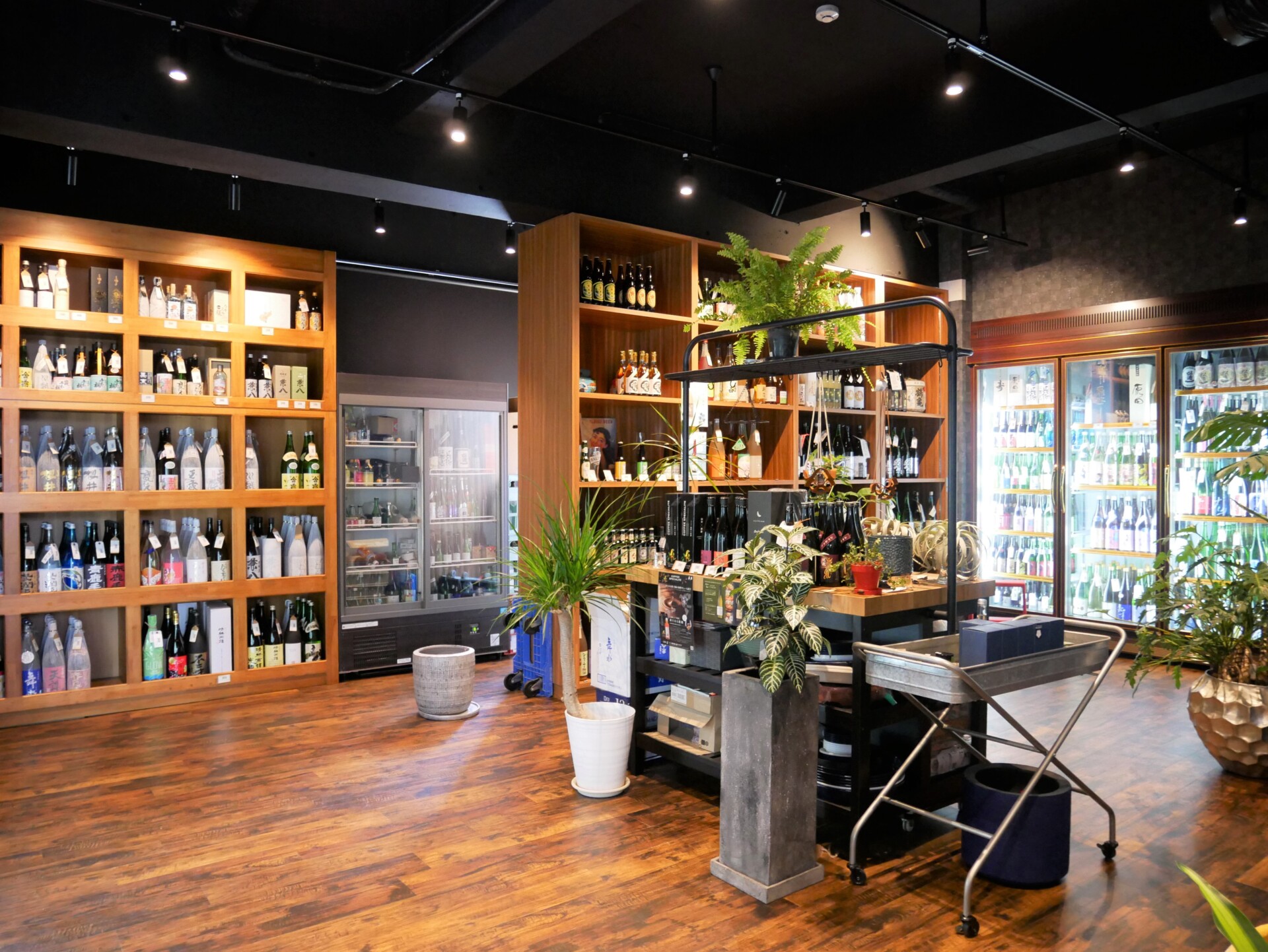 本店と小倉駅ナカ店の2店舗がありますが、本店は日本酒・焼酎・クラフトビール・ワイン・ウイスキー・オリジナル商品といった業務用酒店ならではのバラエティーに富んだ酒類の販売と観葉植物の販売・レンタル、小倉駅ナカ店は九州の酒を中心に店主自らが厳選したお酒の販売と角打ちを行っています。