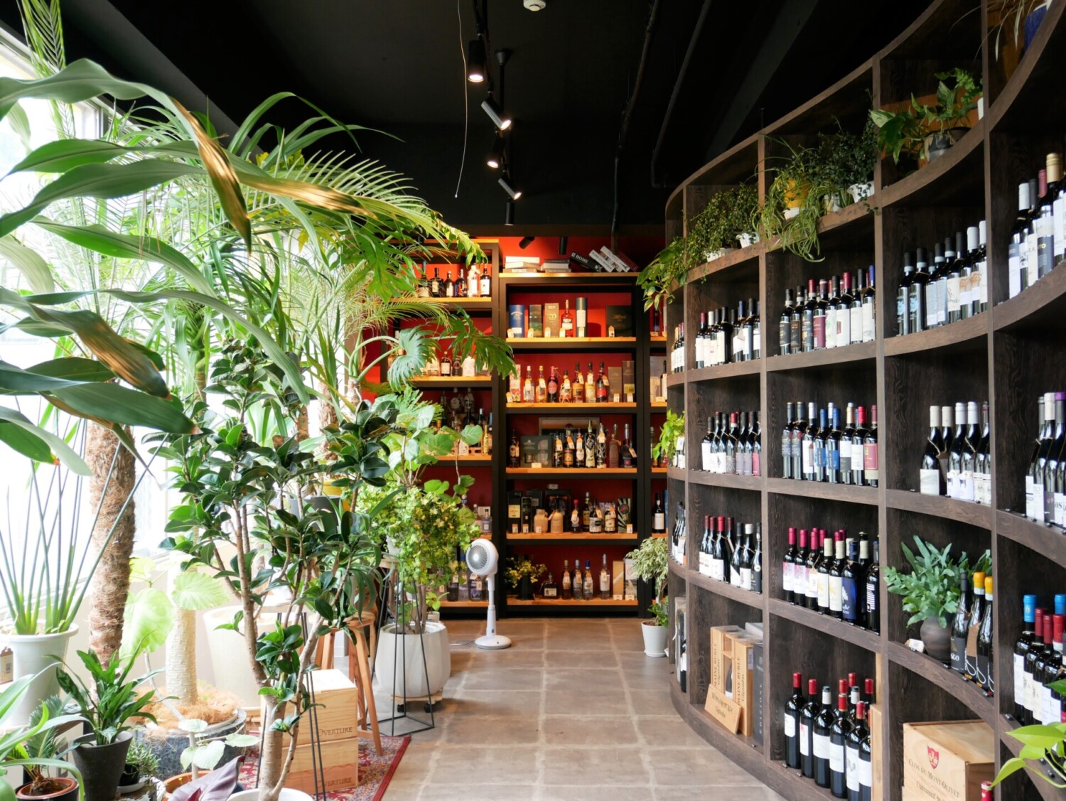 日本酒やワイン、ウイスキーなど充実の品揃えの「本店」 観葉植物の販売・レンタルも