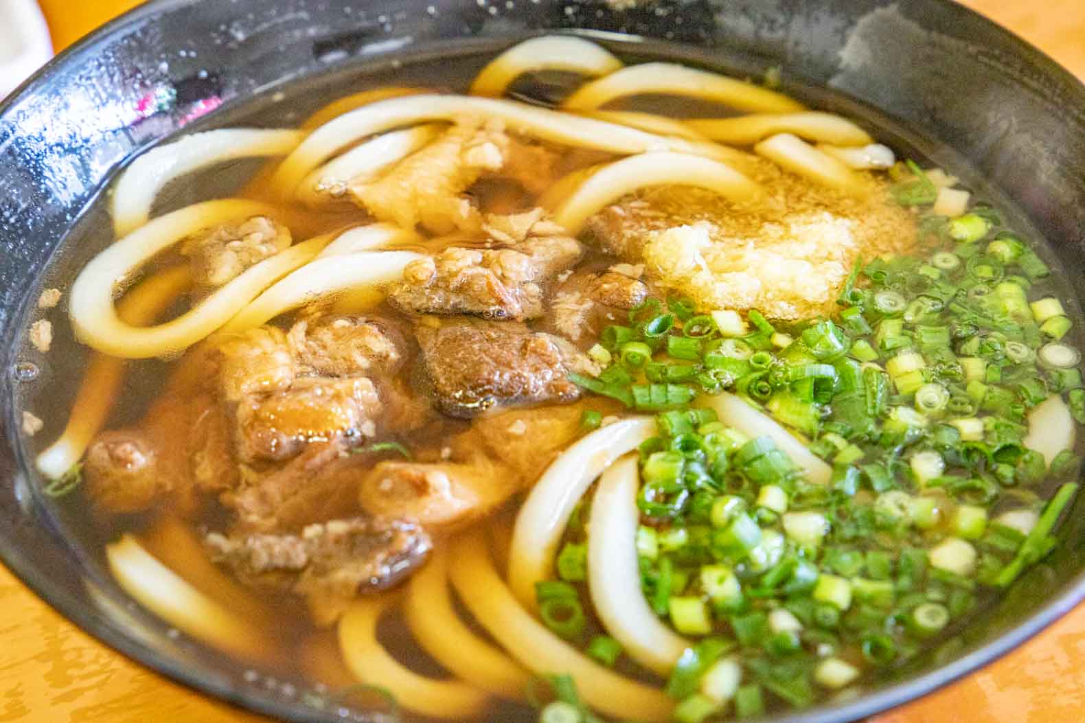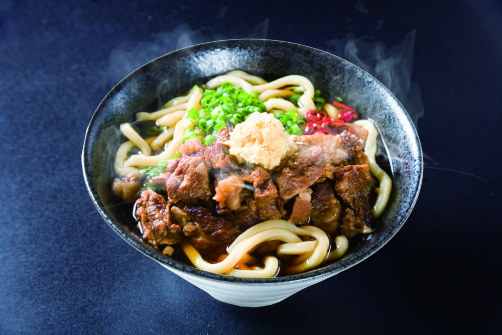 5⽉26⽇にオープンした「肉うどん いのうえ 朽網店」。昨年9⽉に福岡県京都郡みやこ町にオープンした「⾁うどん いのうえ」の2号店で、⽜のほほ⾁・すじ⾁・バラ⾁がゴロゴロ⼊った⼩倉名物「⾁うどん」を味わえるお店です。すじ⾁がゴロゴロ⼊ったうどんに⽣姜をぶっかけて食べるのがお勧めです。
