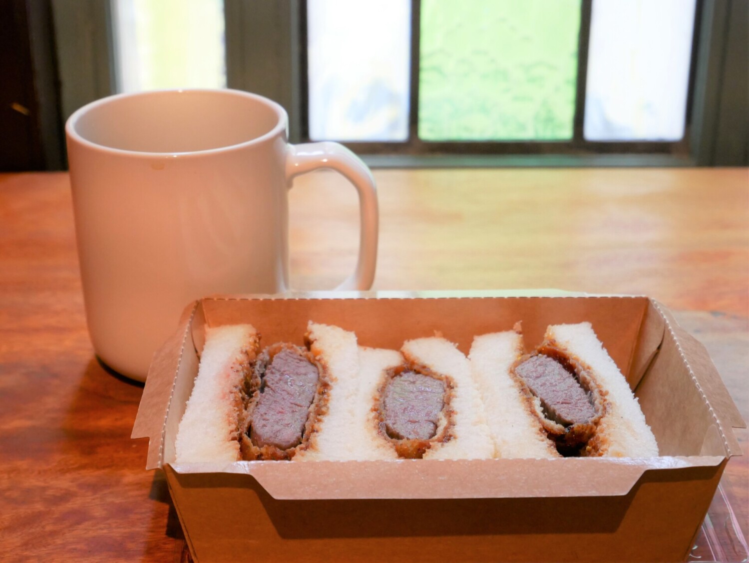 レア状に仕上げられた牛ヒレカツを挟んだサンドは、想像よりもさっぱりとした味わい。一番人気だという豚ヒレカツサンドは、やわらかい豚ヒレカツと濃厚なソースが絶妙です。ちなみにカツのサクッとした食感を楽しみたい人は揚げたてが、カツとパンが程よくなじんだところを味わいたい人はつくってから1~2時間後のサンドがお勧めなんだそう。